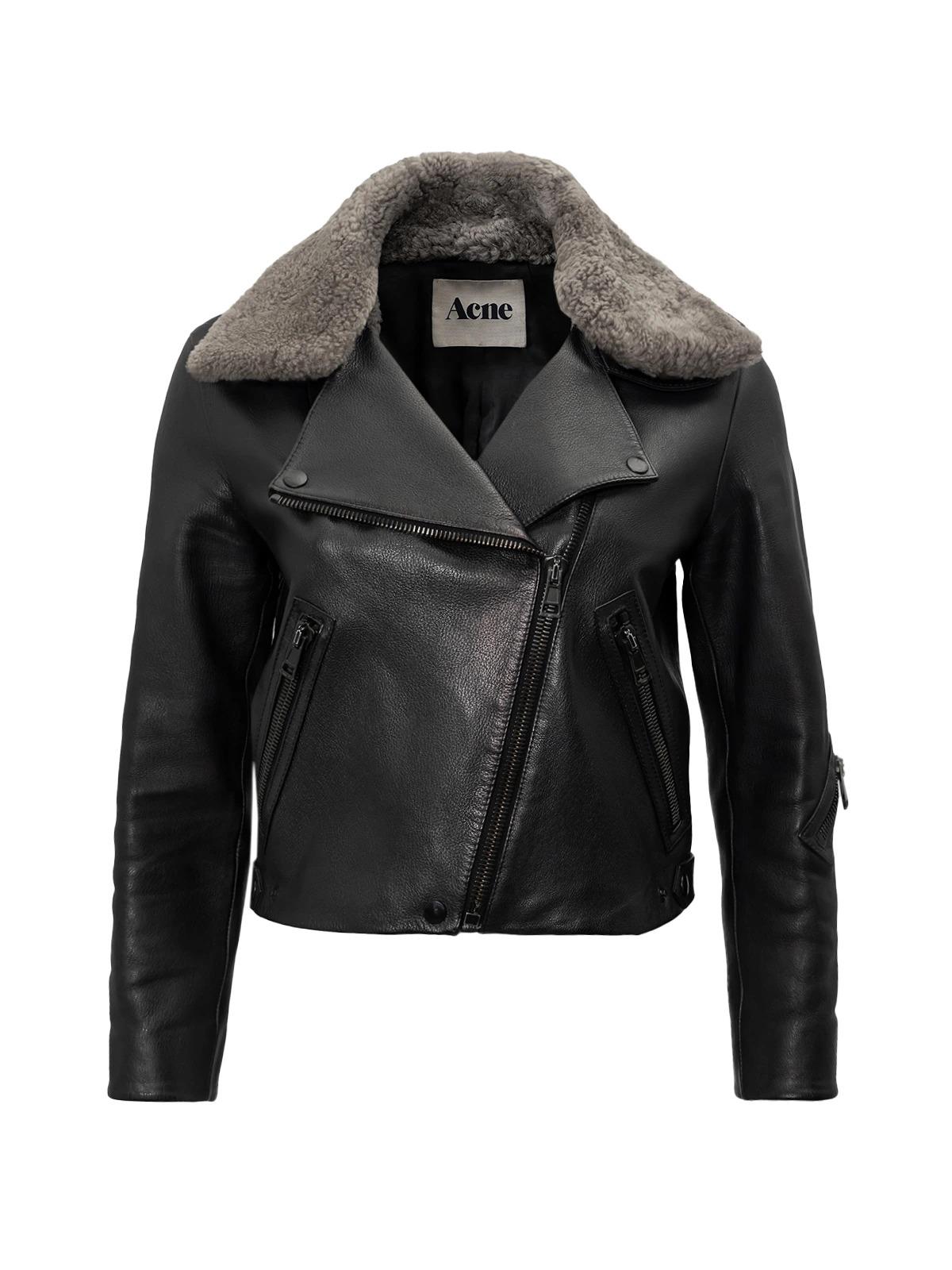 Куртка ACNE STUDIOS FR 36 черная кожа меховой воротник