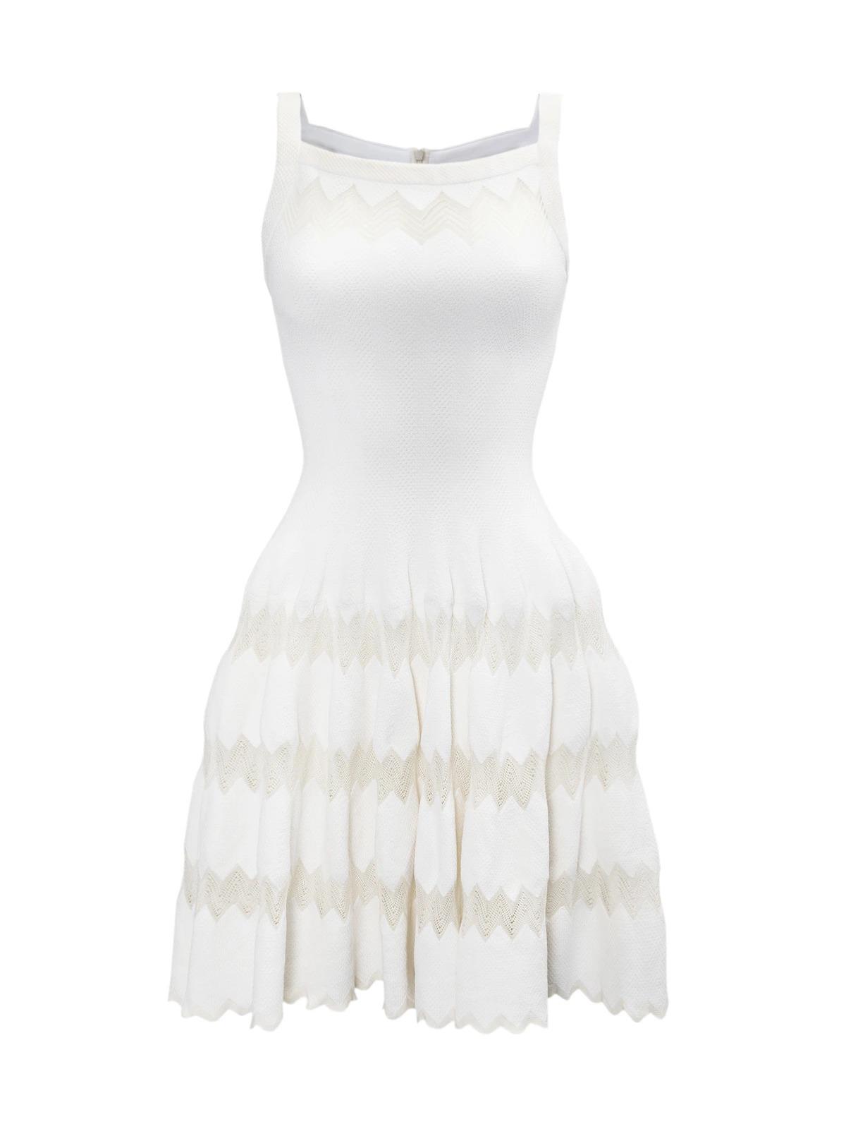 Платье ALAÏA FR 36 белое с ажурными вставками без рукавов шерсть