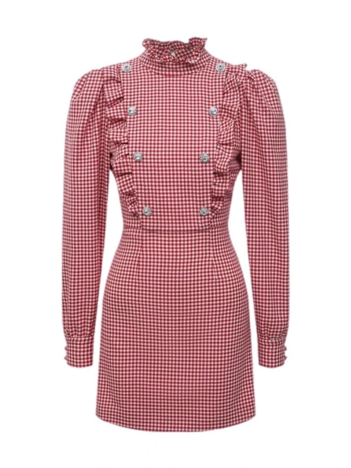 Платье ALESSANDRA RICH FR 36 красное хлопок рябое в белую клетку длинный рукав пуговицы шерсть