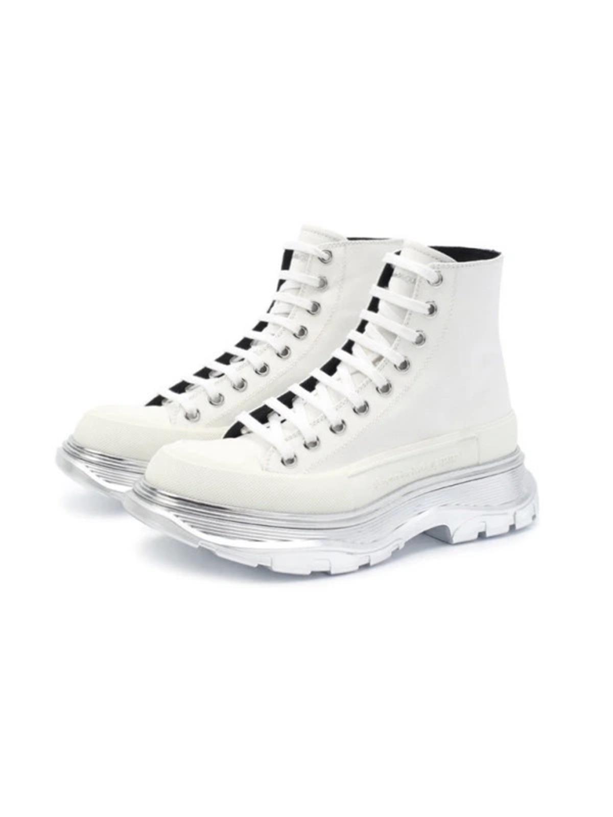 Ботинки ALEXANDER MCQUEEN 39 белые ткань серебряная подошва шнурки