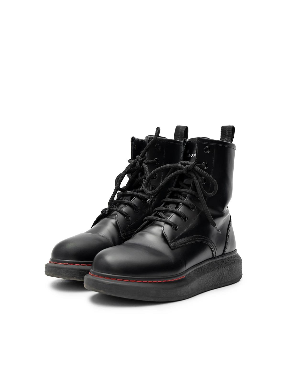 Ботинки ALEXANDER MCQUEEN EU 38.5 черные кожа на шнуровке красная прострочка