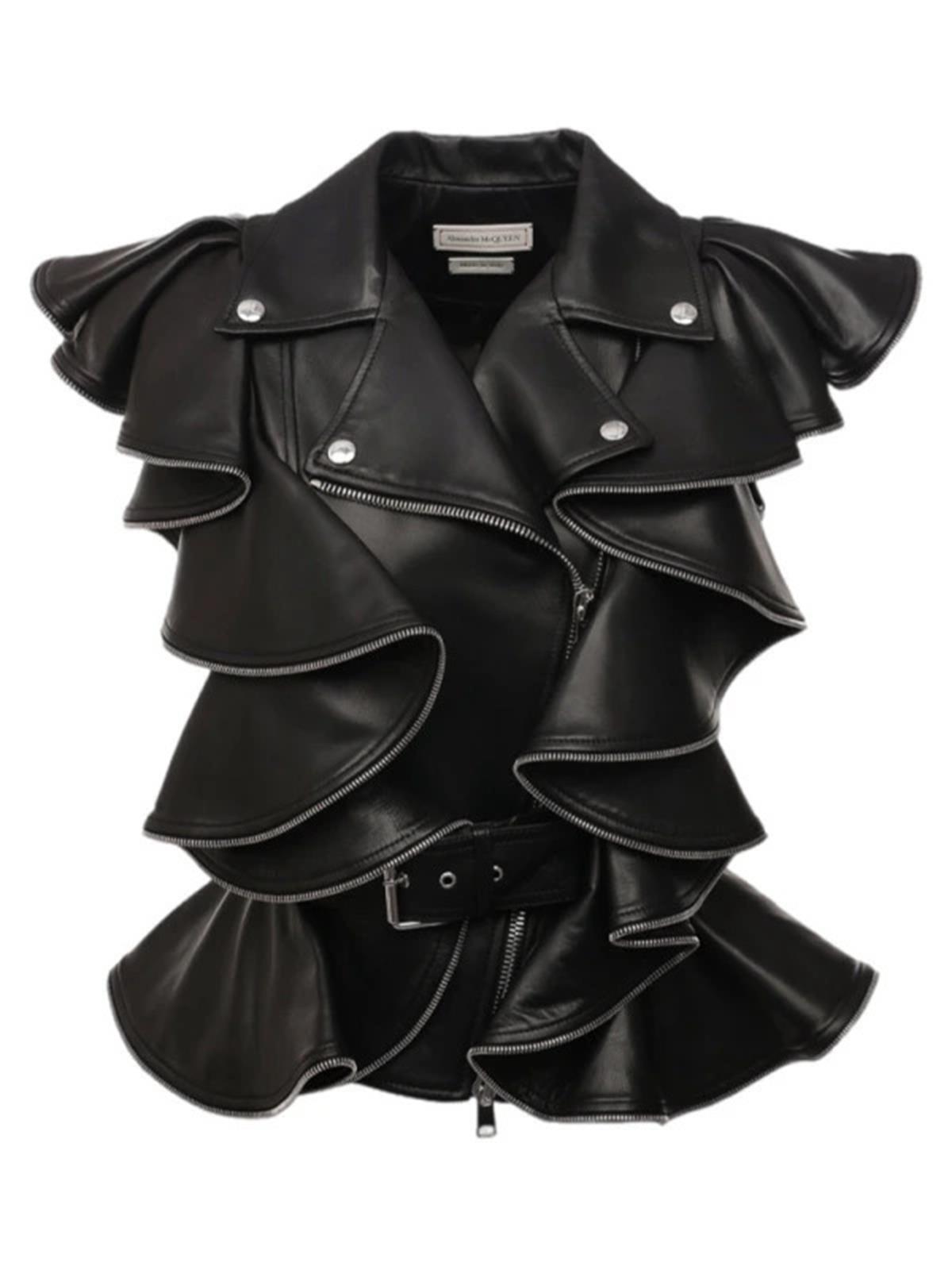 Жилет ALEXANDER MCQUEEN IT 42 черная кожа отделка молнии