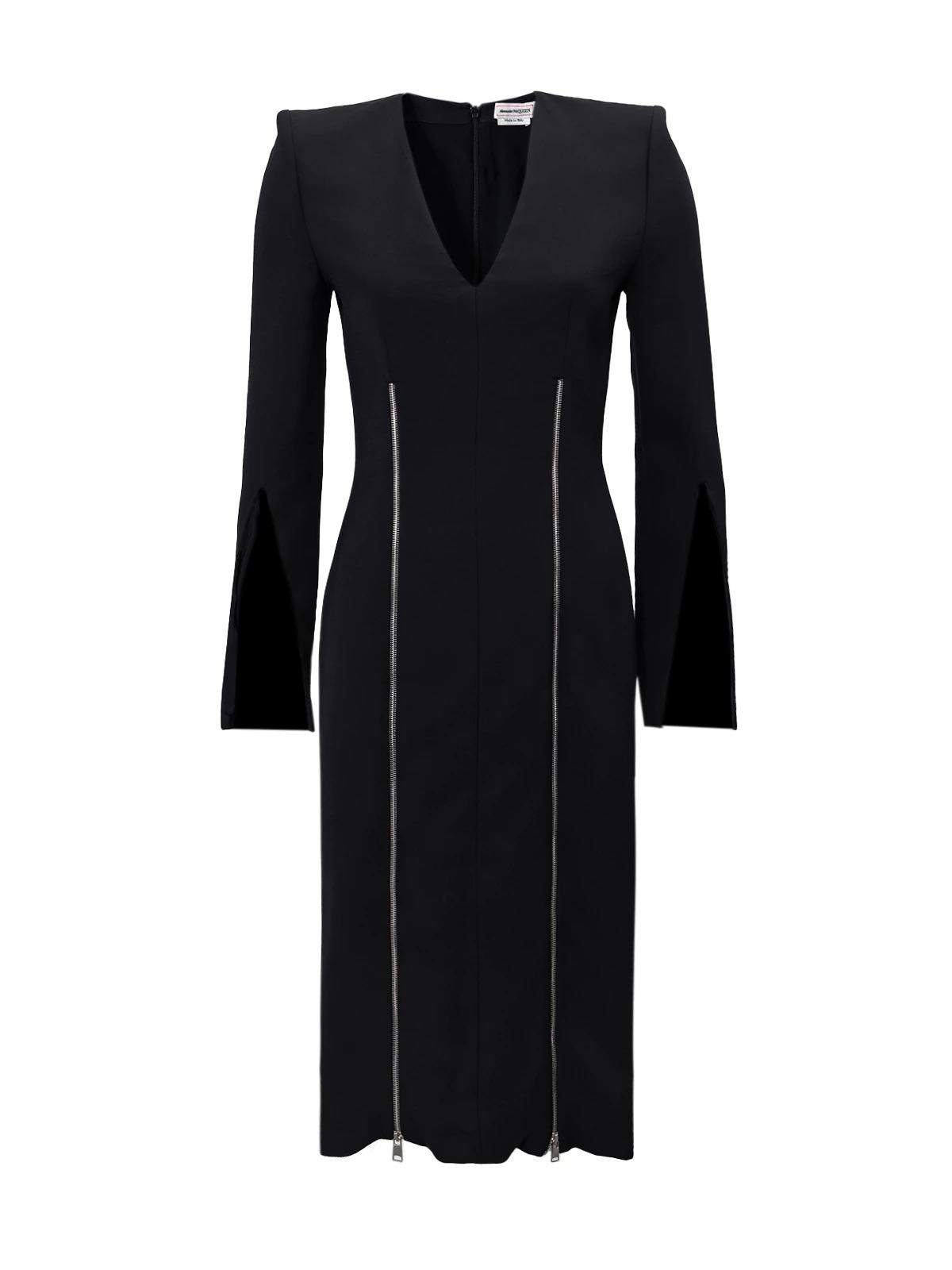 Платье ALEXANDER MCQUEEN IT 40 черное длинные рукава с разрезом молния шерсть