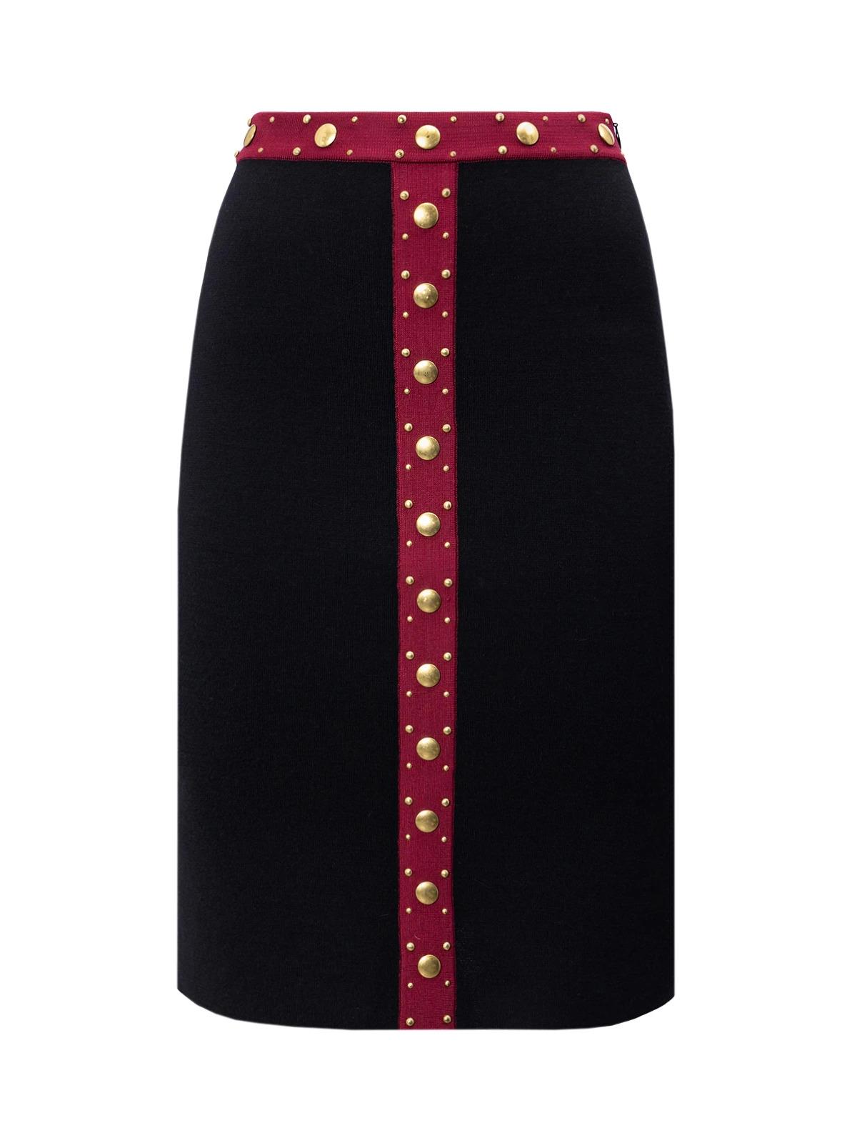 Юбка ALEXANDER MCQUEEN INT ХS черная бордовая отделка клепки шерсть