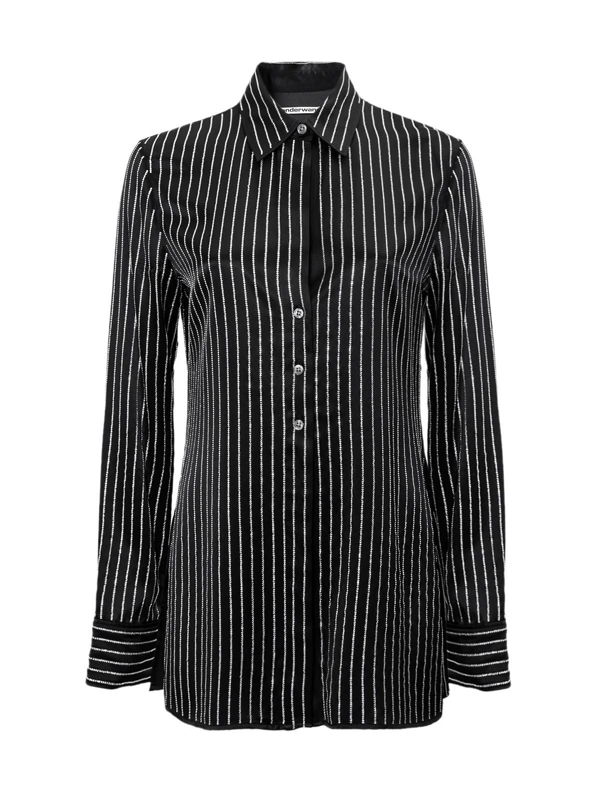Рубашка ALEXANDER WANG INT M черная полоска камни шелк
