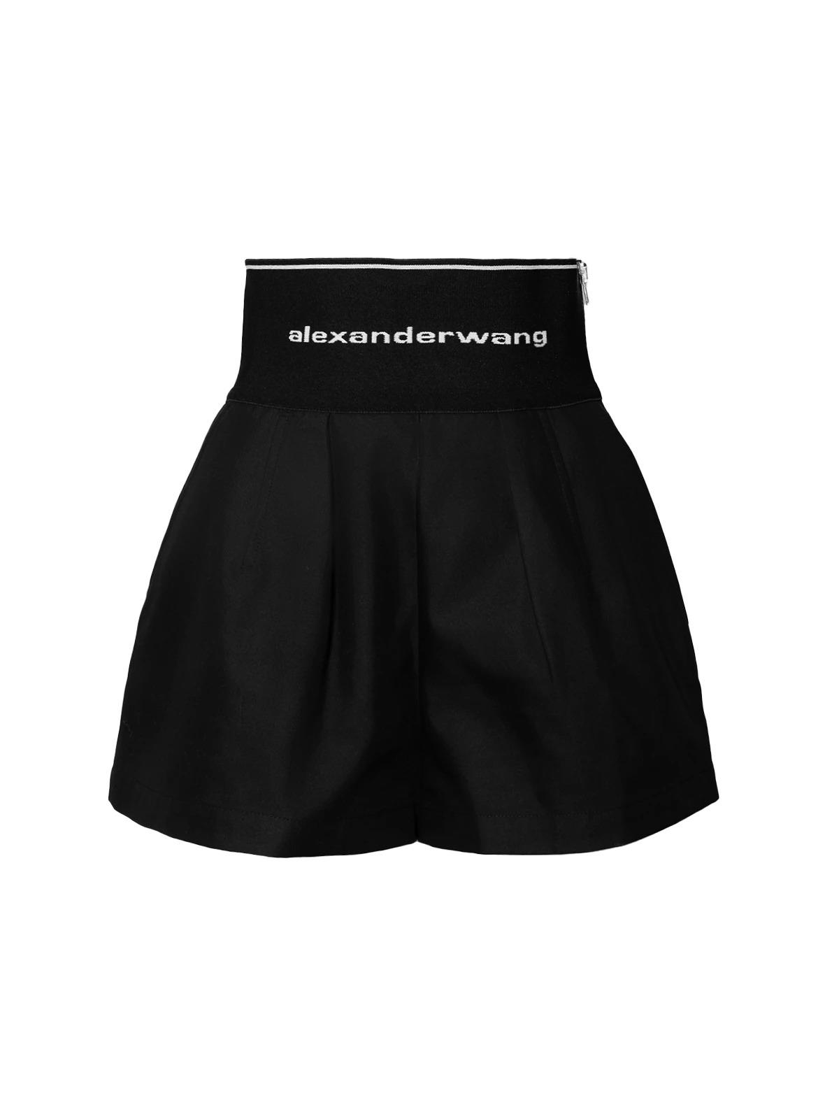 Шорты ALEXANDER WANG 2 черные широкая резинка с лого хлопок