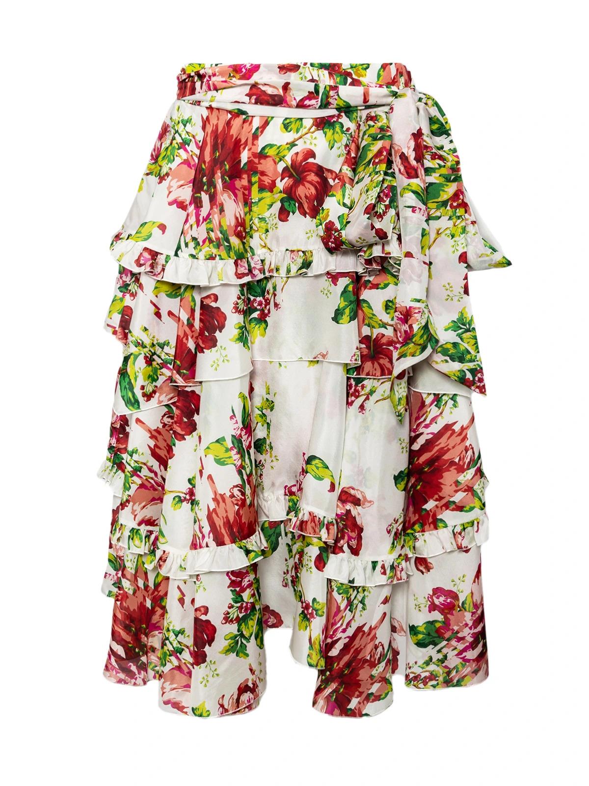 Юбка ALEXANDRE VAUTHIER 40FR белая цветы красные зеленые рюши пояс завязки шелк