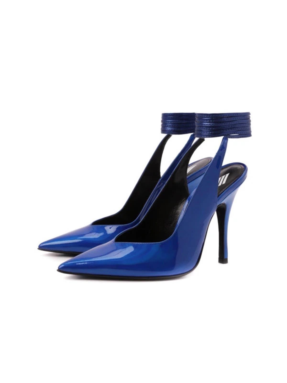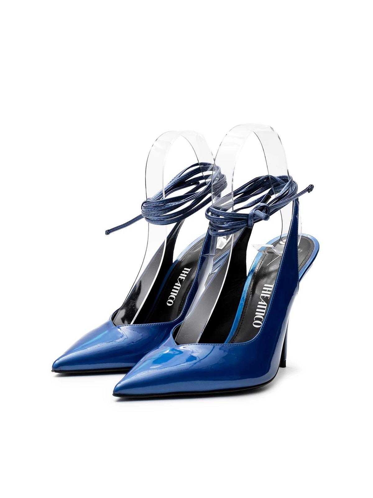 Туфли THE ATTICO 38 синие лак завязки открытая пятка острый нос НОВЫЕ