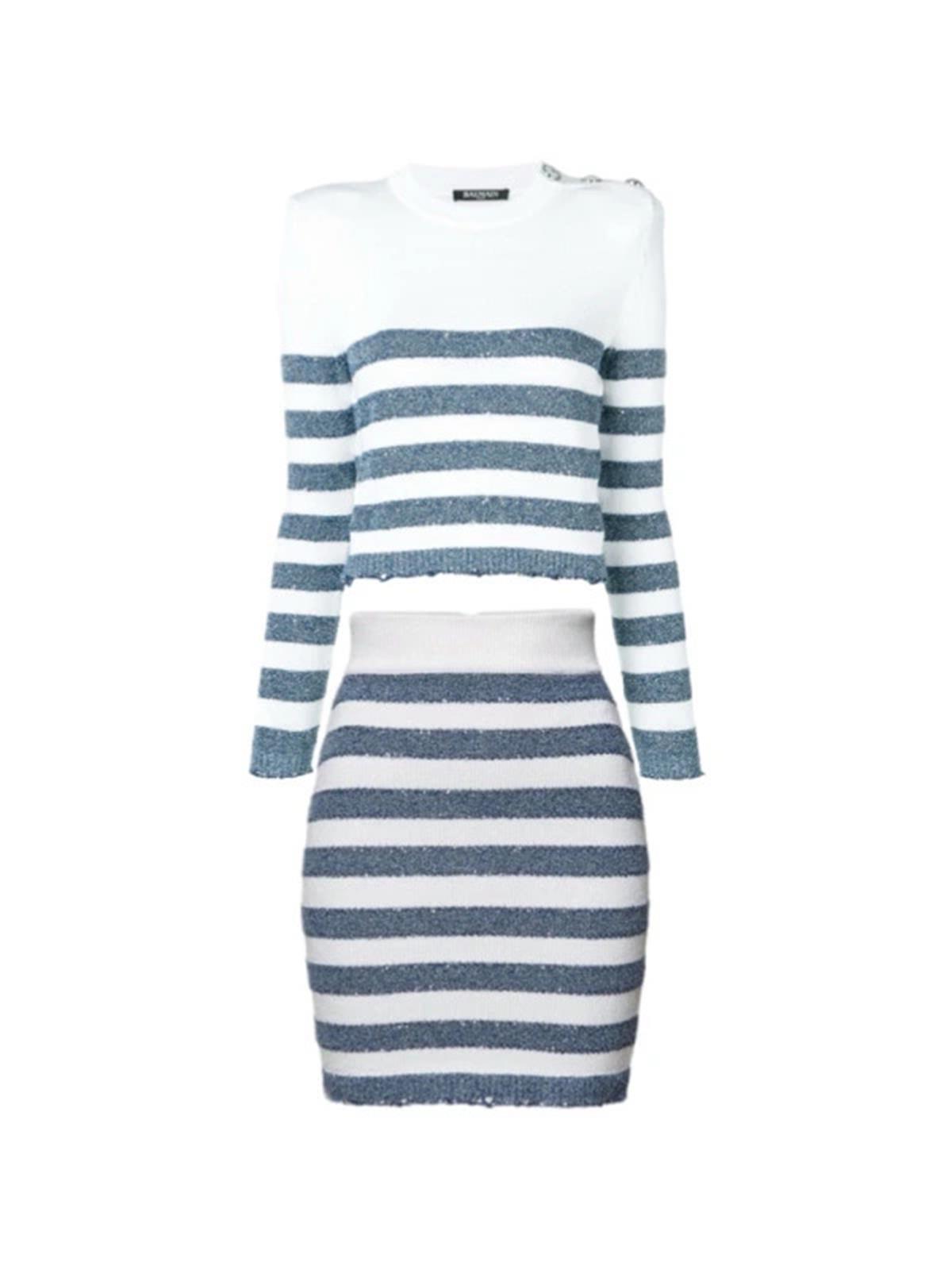 Костюм BALMAIN 38FR 36FR белый синяя полоска люрекс джемпер +юбка вискоза