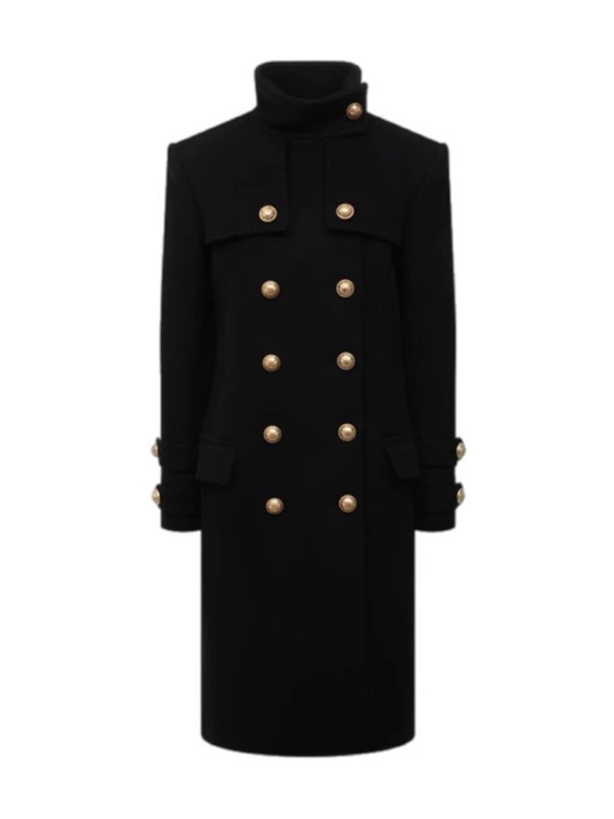 Пальто BALMAIN FR 36 черное золотые пуговицы шерсть