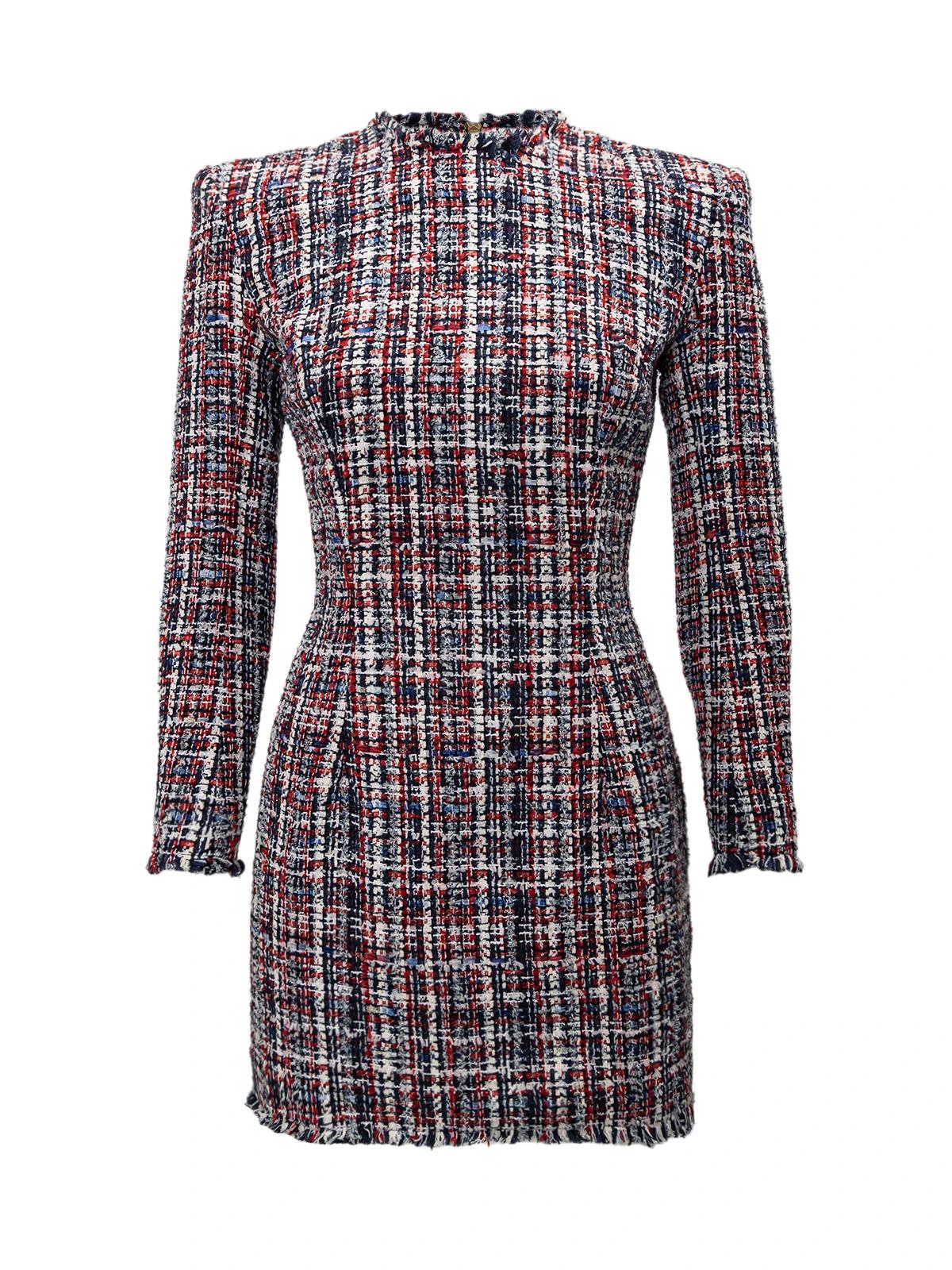 Платье BALMAIN FR 38 синий красная белая нитка твид хлопок