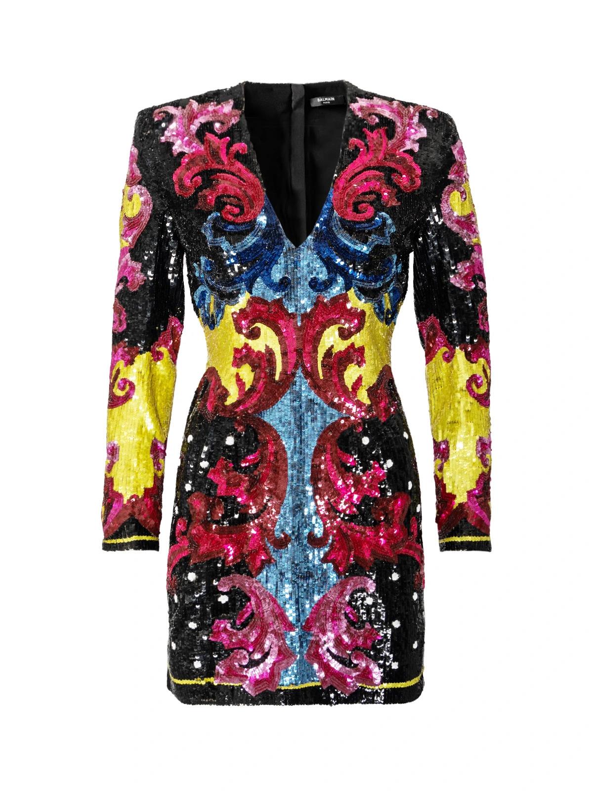 Платье BALMAIN FR 38 черное разноцветные пайетки полиамид