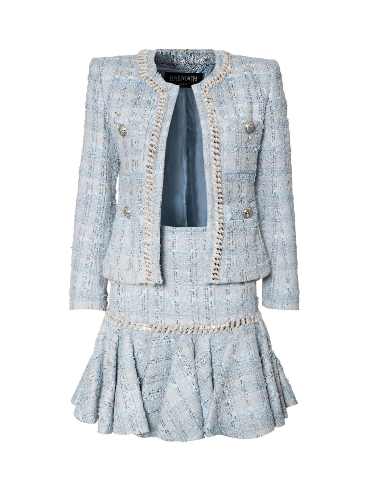 Костюм BALMAIN FR 38 голубой твид жакет юбка хлопок