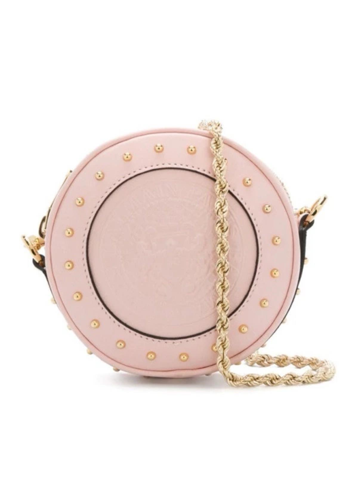 Сумка BALMAIN круглая розовая кожа серебряная цепочка 20х20х4см