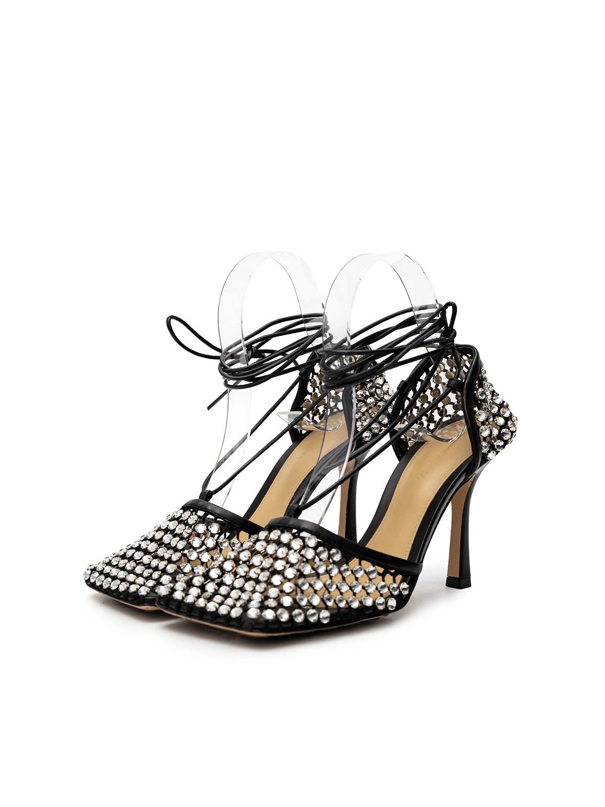 Босоножки BOTTEGA VENETA EU 39 черные кожа сетка камни