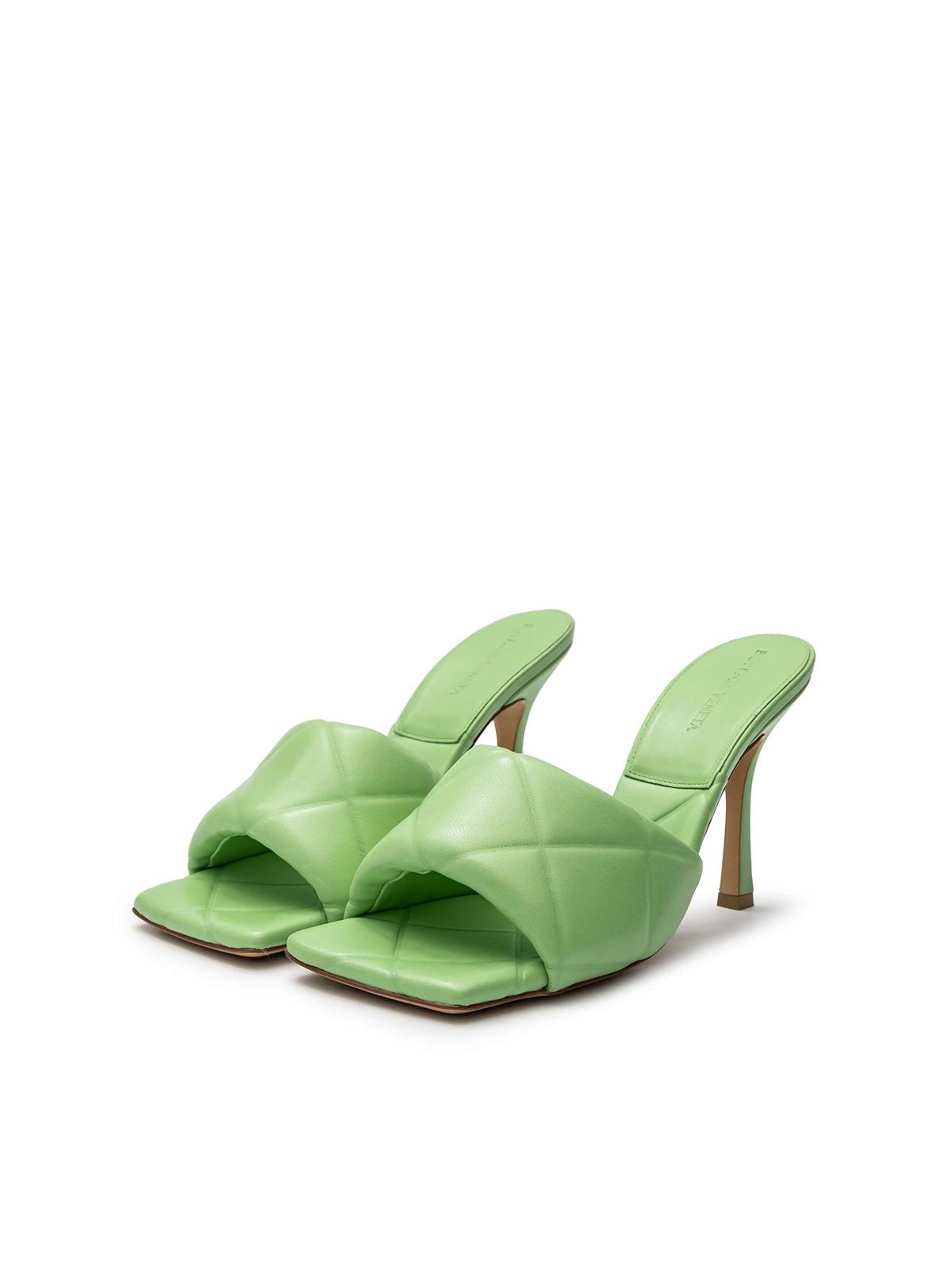 Босоножки BOTTEGA VENETA EU 39.5 зеленые кожа квадратный нос каблук пыльник
