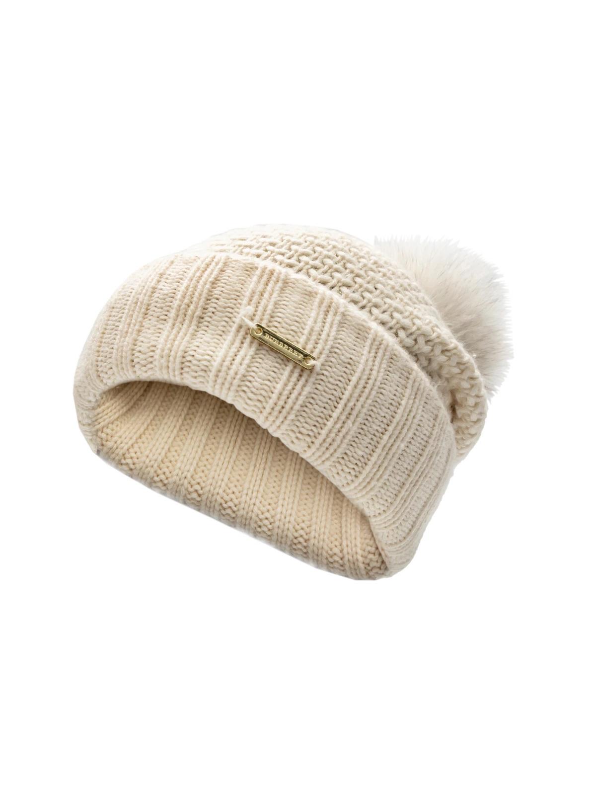 Шапка BURBERRY ONE SIZE бежевая шерсть меховой пампон