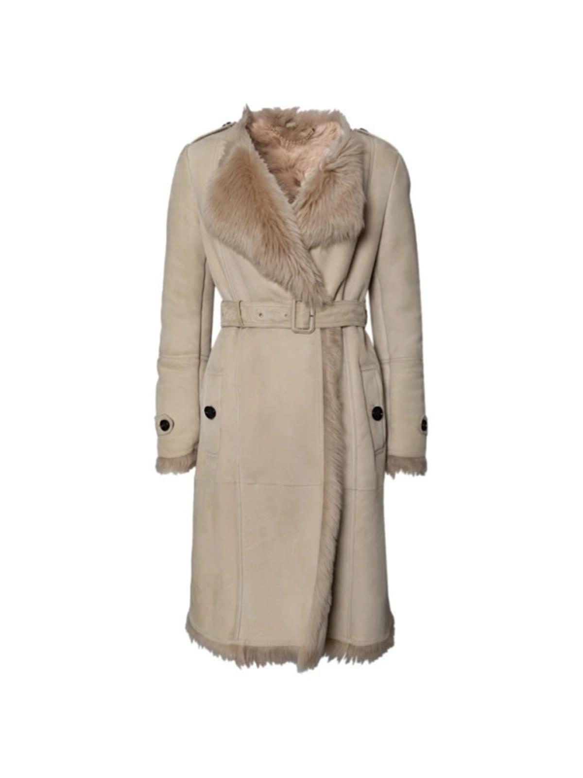Дубленка BURBERRY 44it бежевая замша maxi овчина