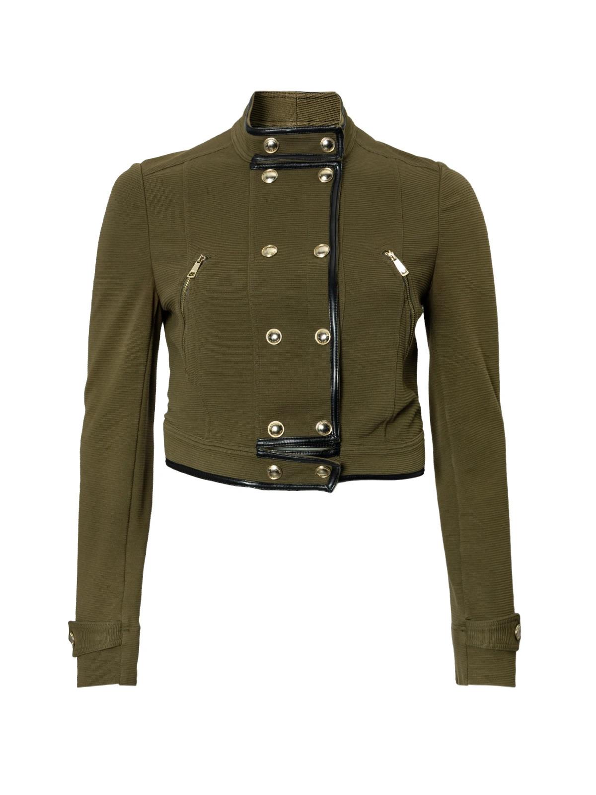Пиджак BURBERRY IT 42 хаки зеленый черная кожаная отделка хлопок