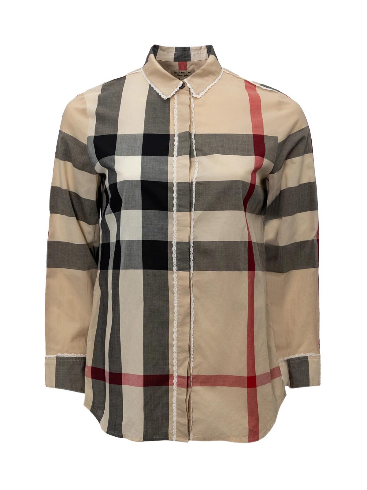Рубашка BURBERRY INT S бежевая клетка хлопок