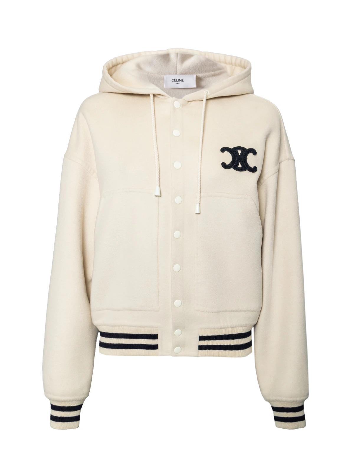 Куртка CELINE FR 38 бежевая кашемир шерсть с капюшоном черное лого кофр