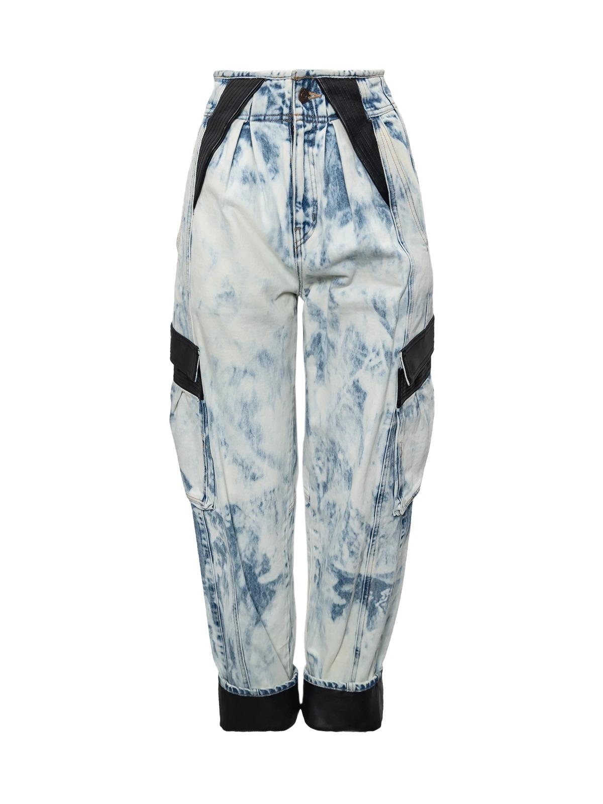 Джинсы CELINE 25 голубые варенки черные кожаные вставки хлопок