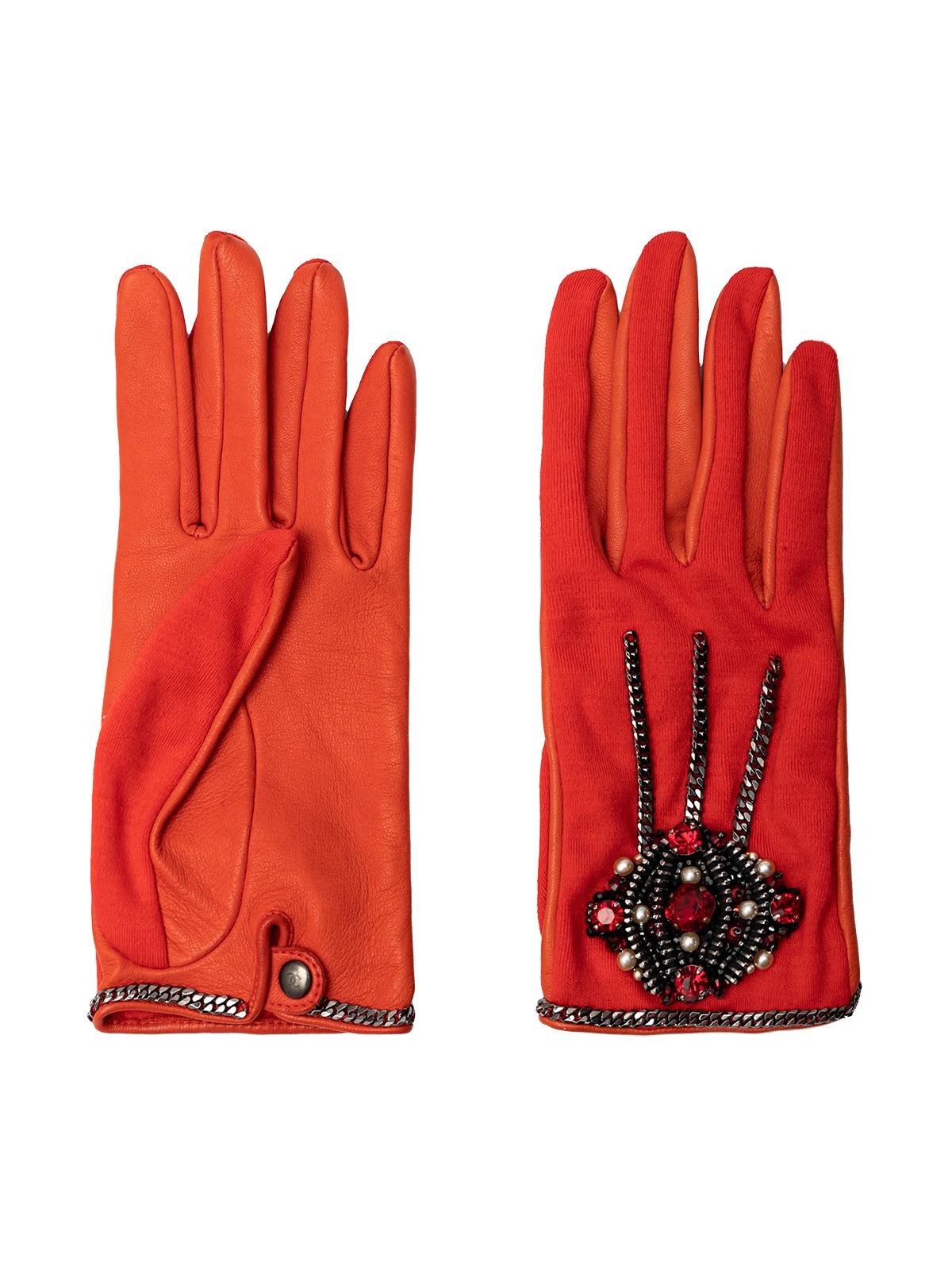 Перчатки CHANEL INT 7/5 красные кожа ткань камни цепочки