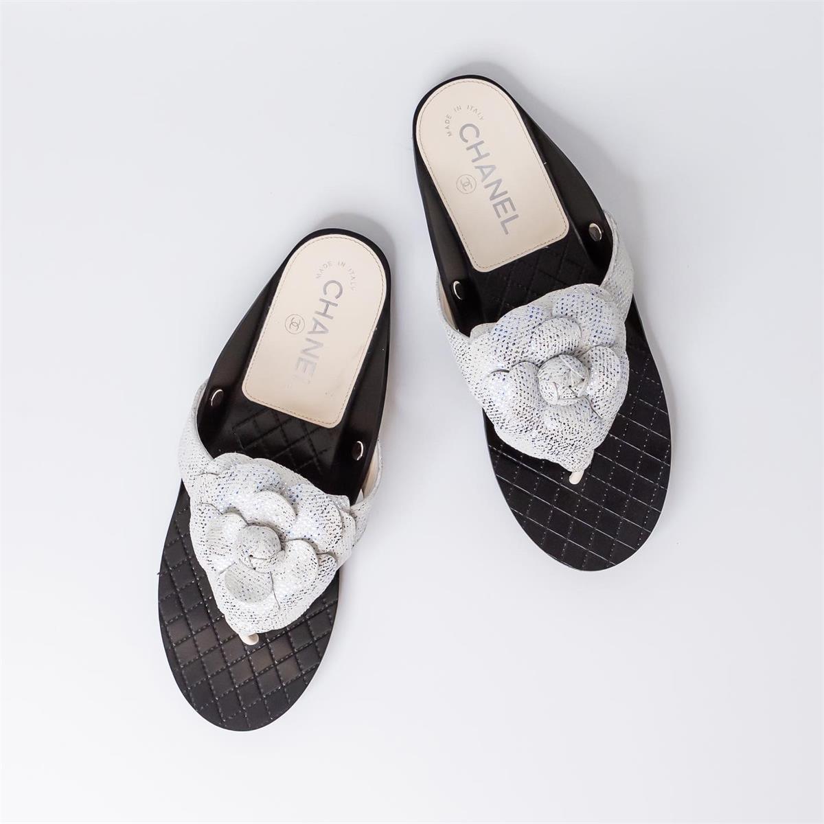 Шлепанцы CHANEL 37 серебряный резина цветок