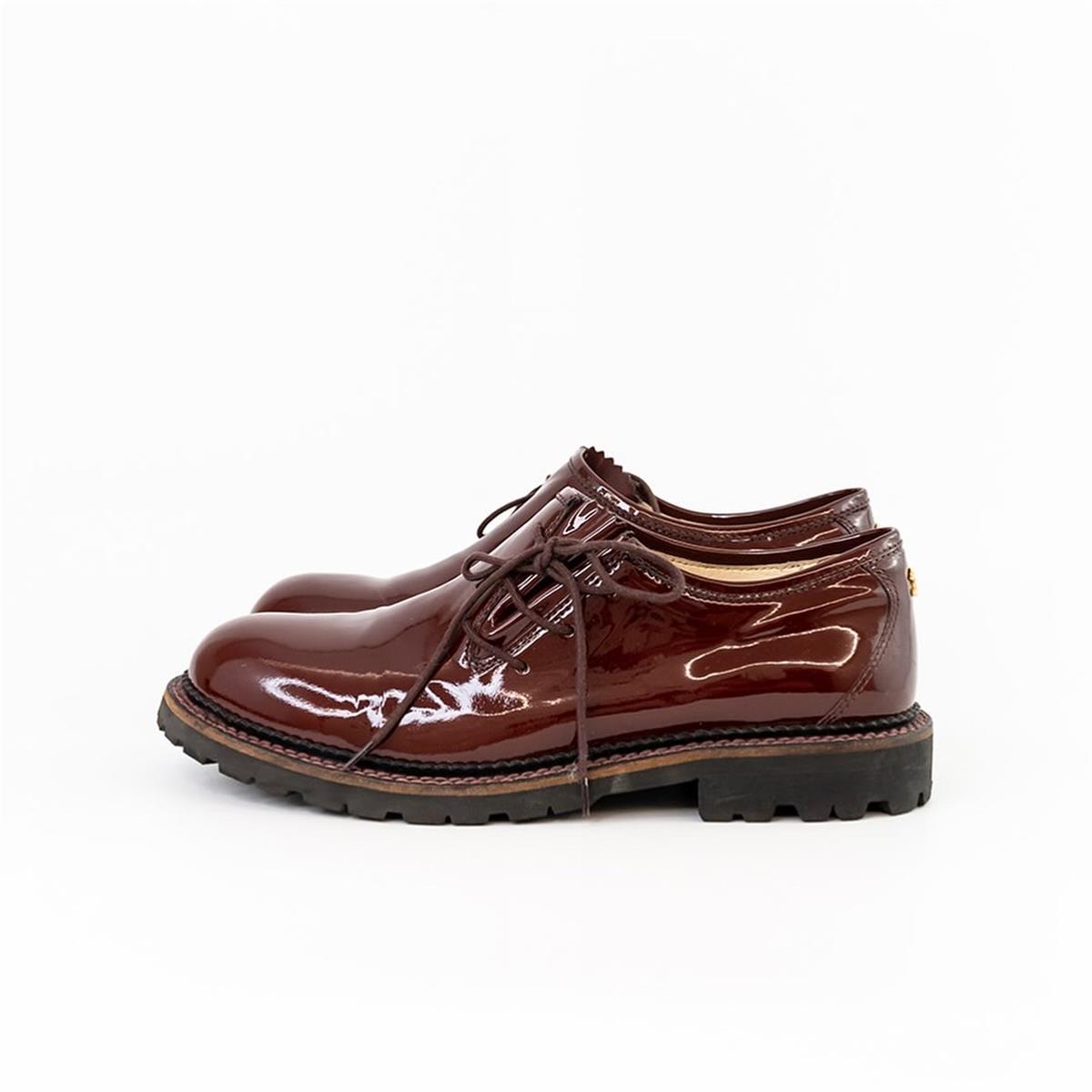 Ботинки CHANEL 38.5 коричневые лак шнурки сзади золотое лого