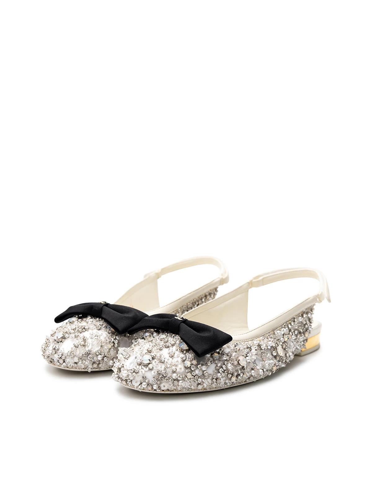 Балетки CHANEL EU 39.5 белые ткань камни черные банты коробка