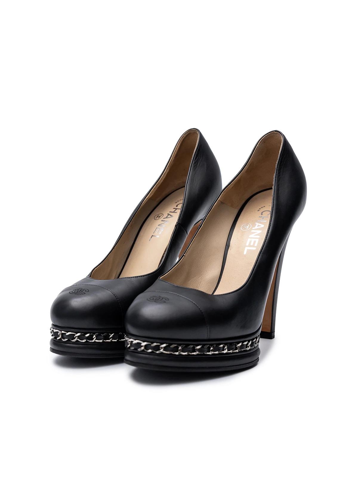 Туфли CHANEL EU 40.5 черные кожа на платформе с цепочкой