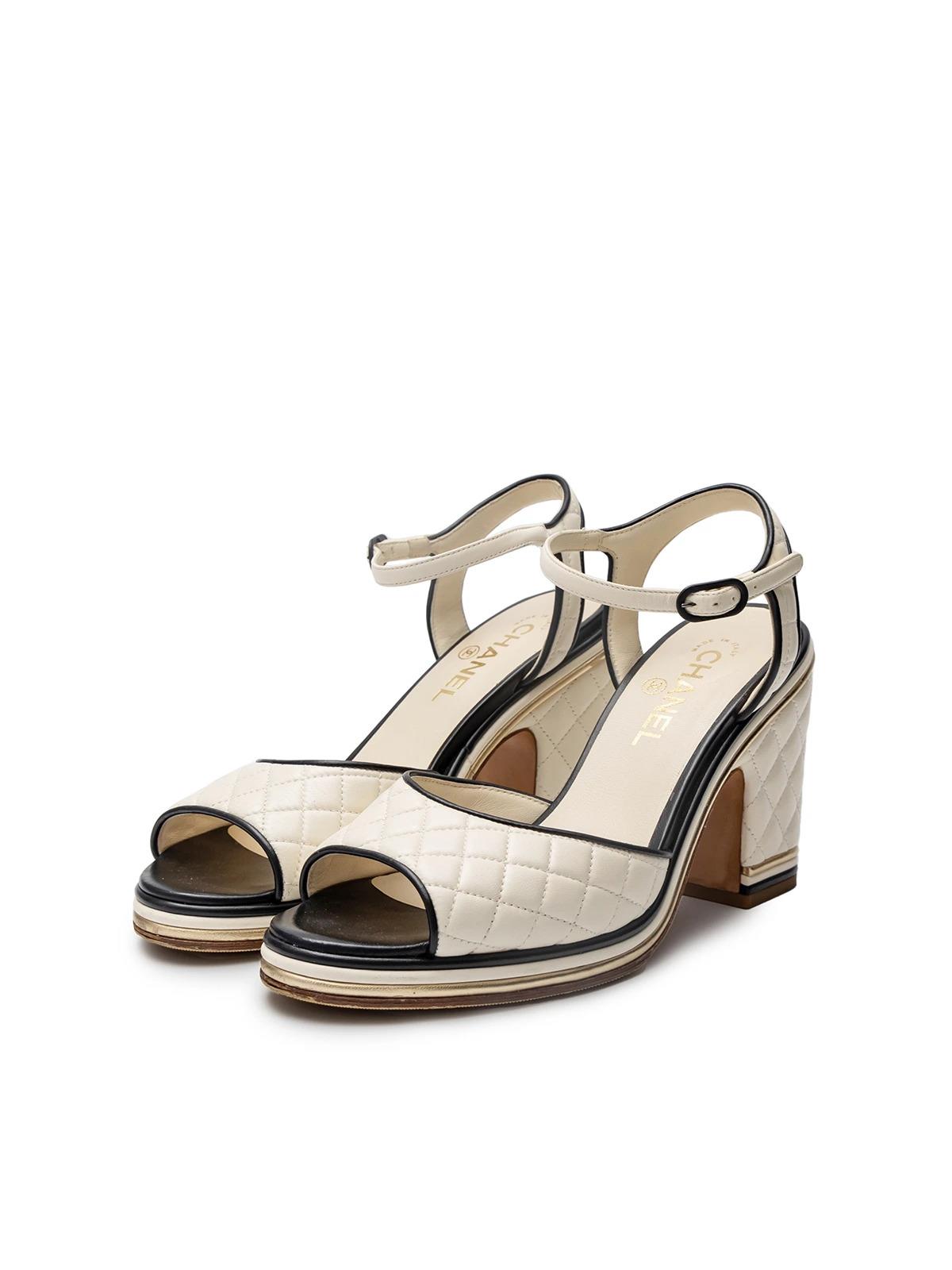Босоножки CHANEL EU 39.5 белые черный и золотой кант кожа