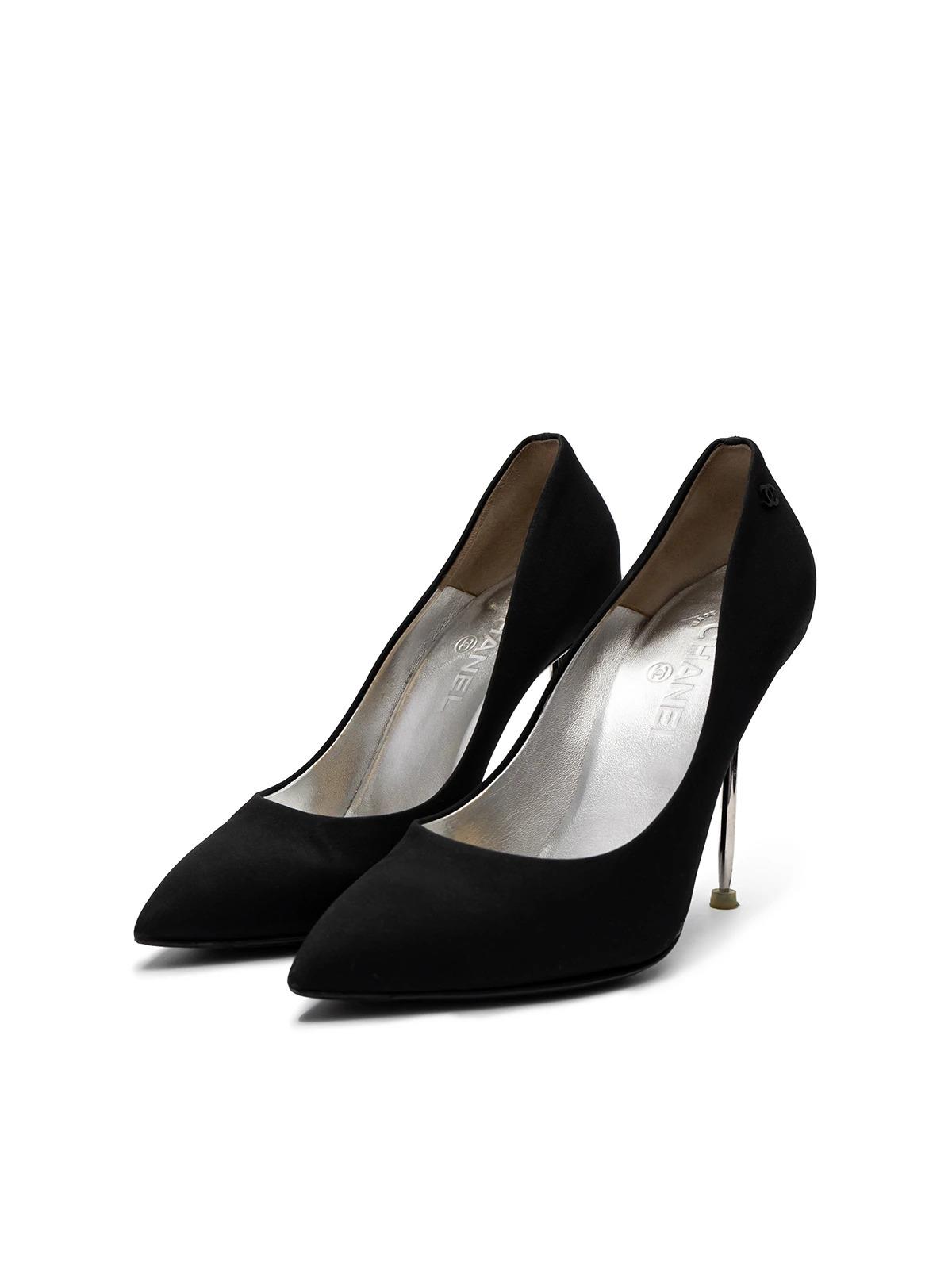 Туфли CHANEL EU 39 черные ткань серебряная шпилька