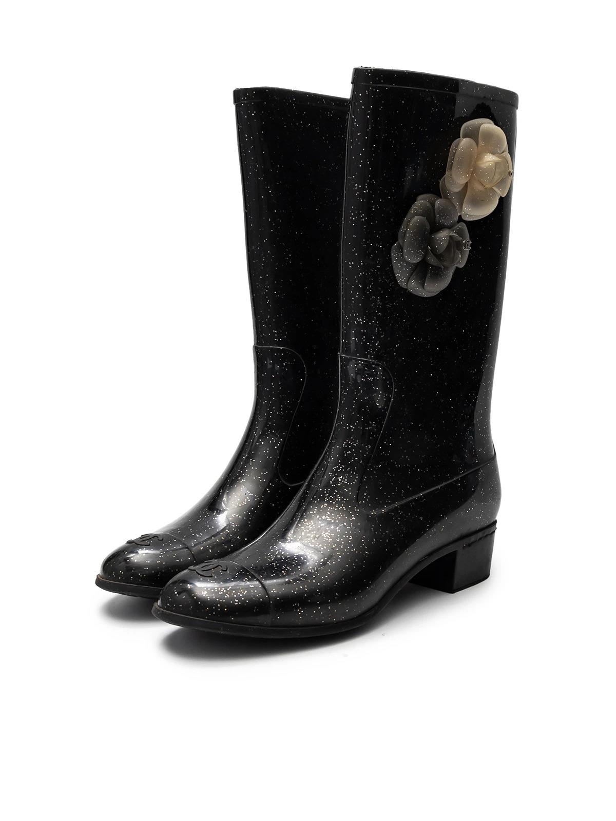 Сапоги CHANEL EU 40 черные резина аппликация цветы