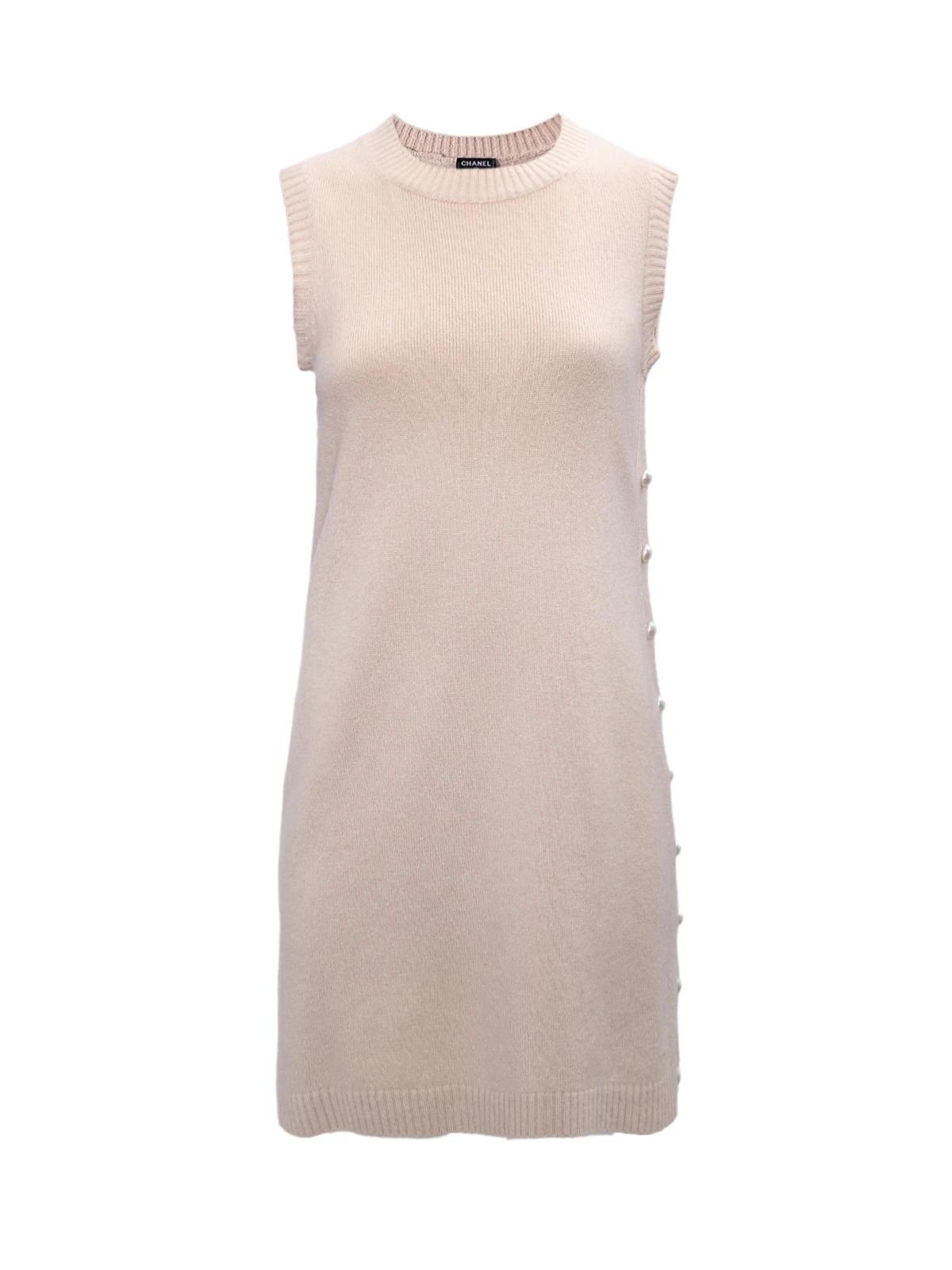 Платье CHANEL FR 36 бежевое без рукавов жемчужины кашемир