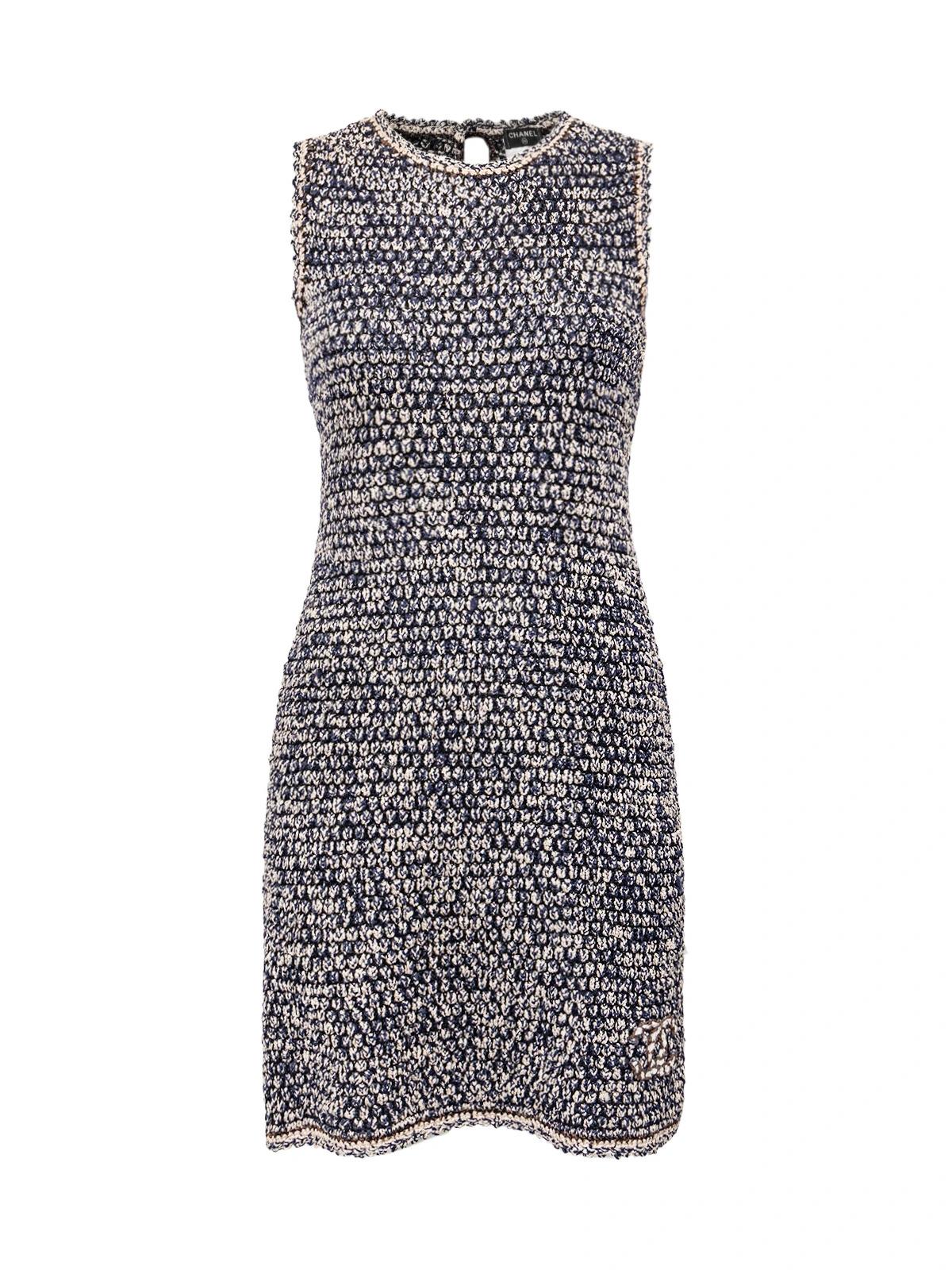 Платье CHANEL FR 36 синее розовый меланж без рукавов лого внизу вискоза