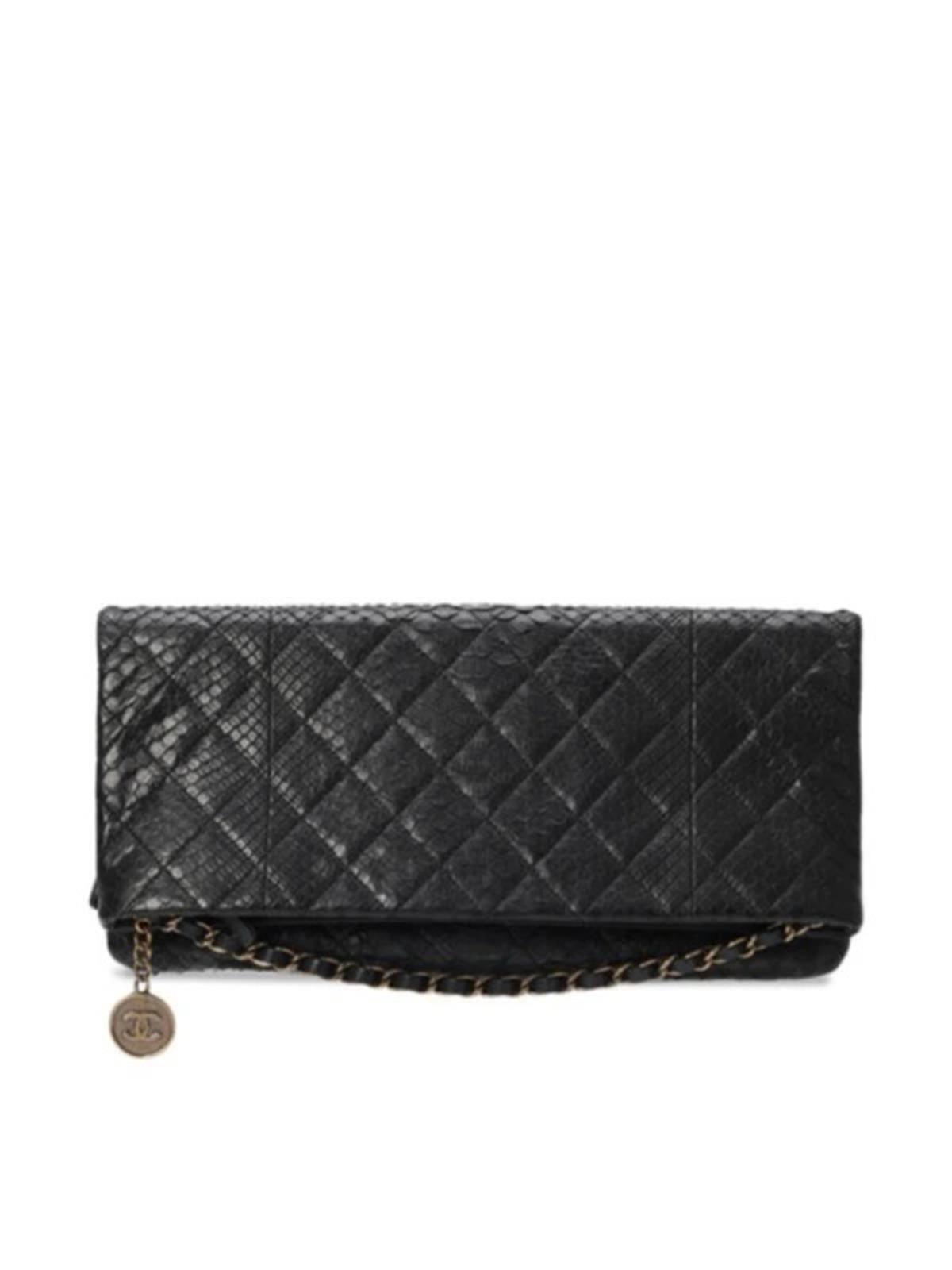 Клатч CHANEL черный экзотическая кожа питон золотое лого на цепочке +карта +пыльник