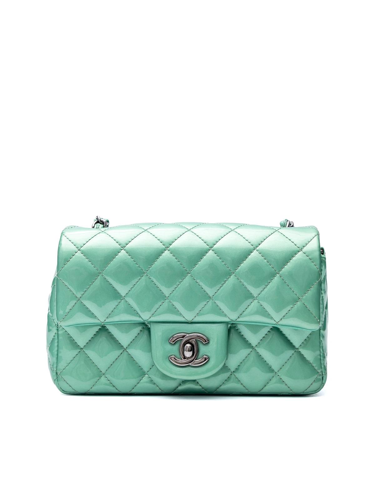 Сумка CHANEL INT XS зеленый лак кожа серебряная фурнитура