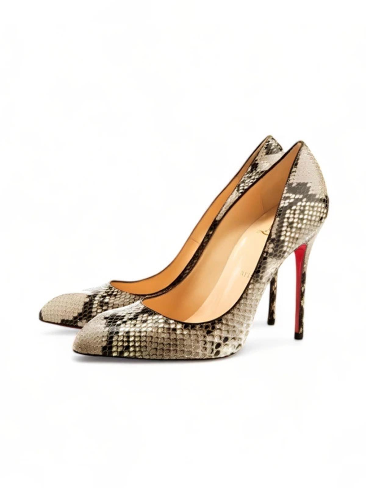 Туфли CHRISTIAN LOUBOUTIN 39 бежевые экзотическая кожа черный питон