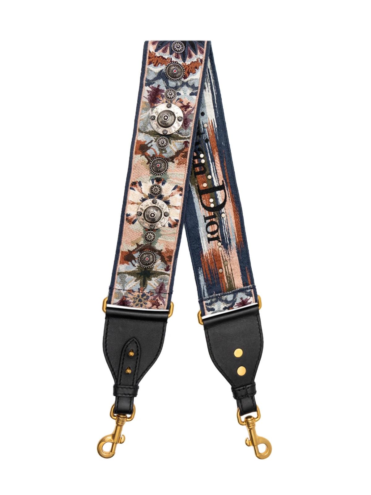 Ремень DIOR для сумки синий ткань узоры серебряная фурнитура