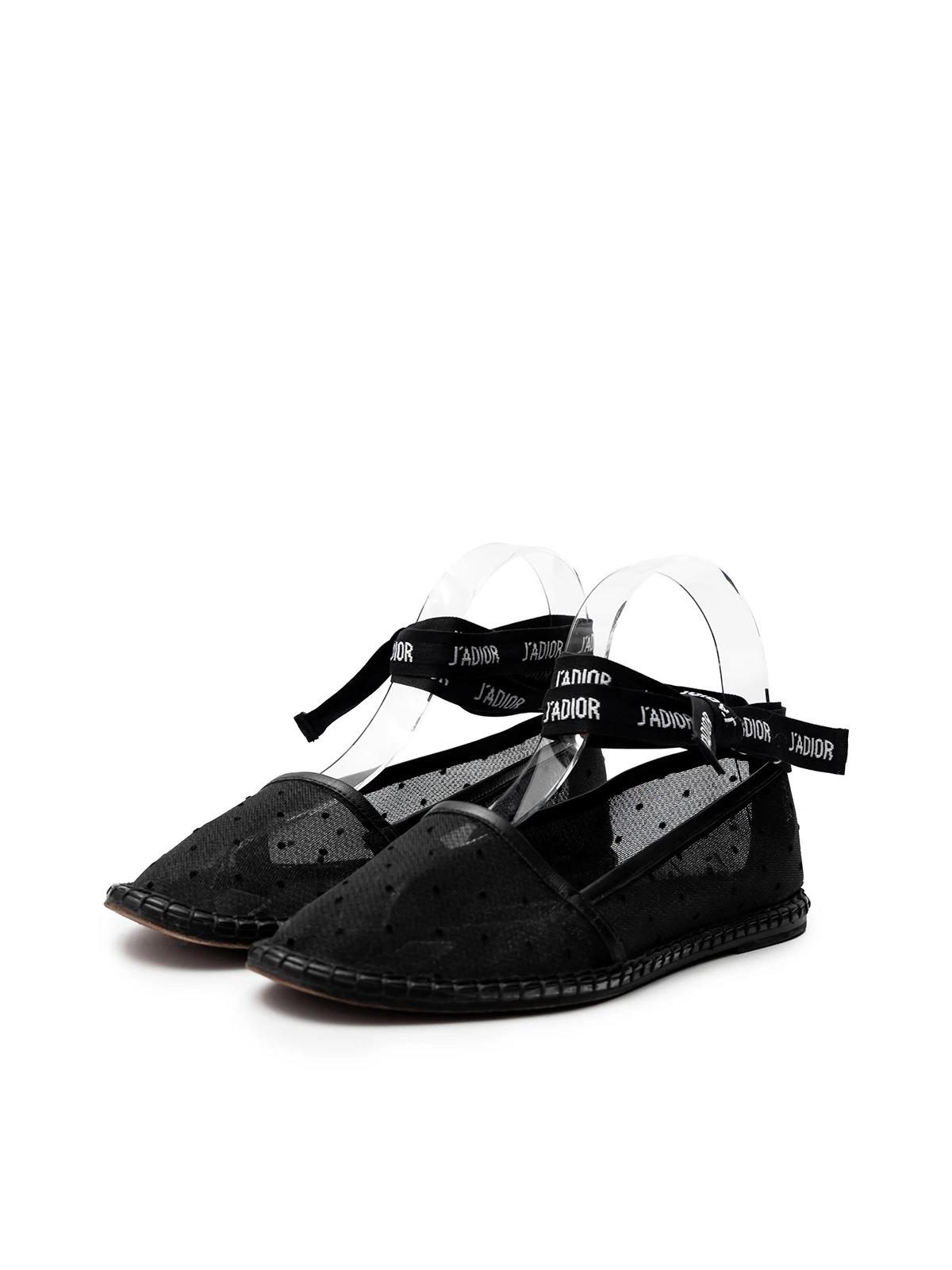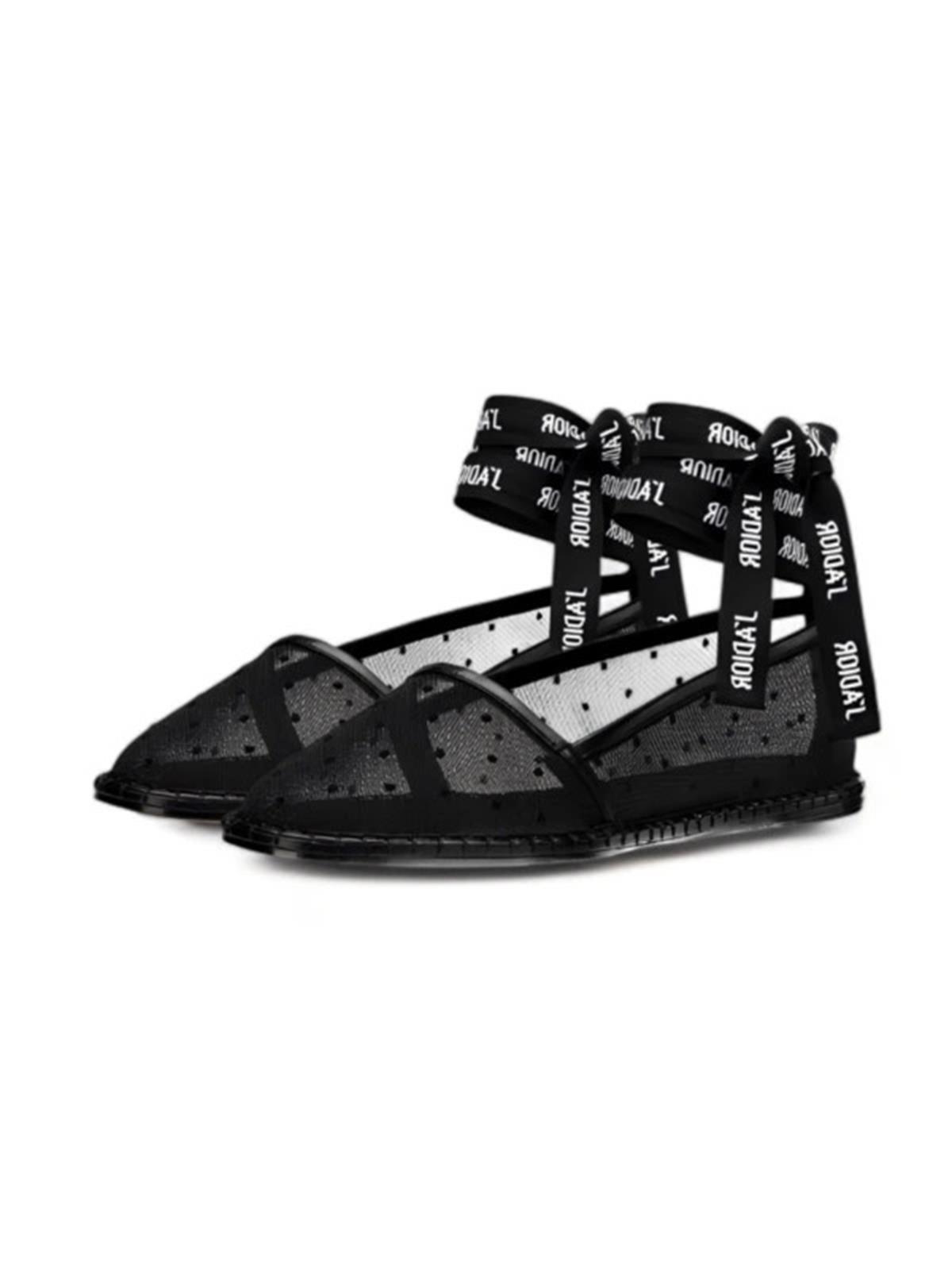 Балетки DIOR 36 черные ткань сетка горох завязки