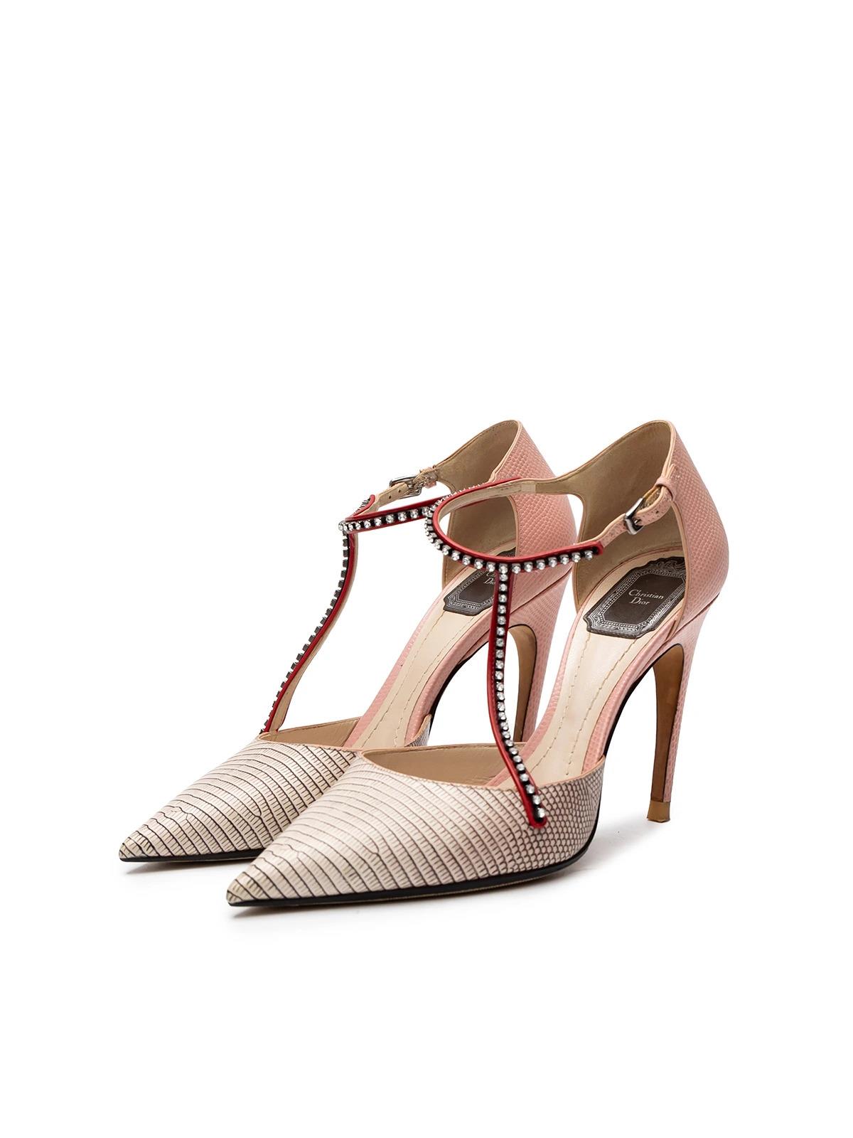 Туфли DIOR 37.5 розовые кожа ремешок стразы молочный нос