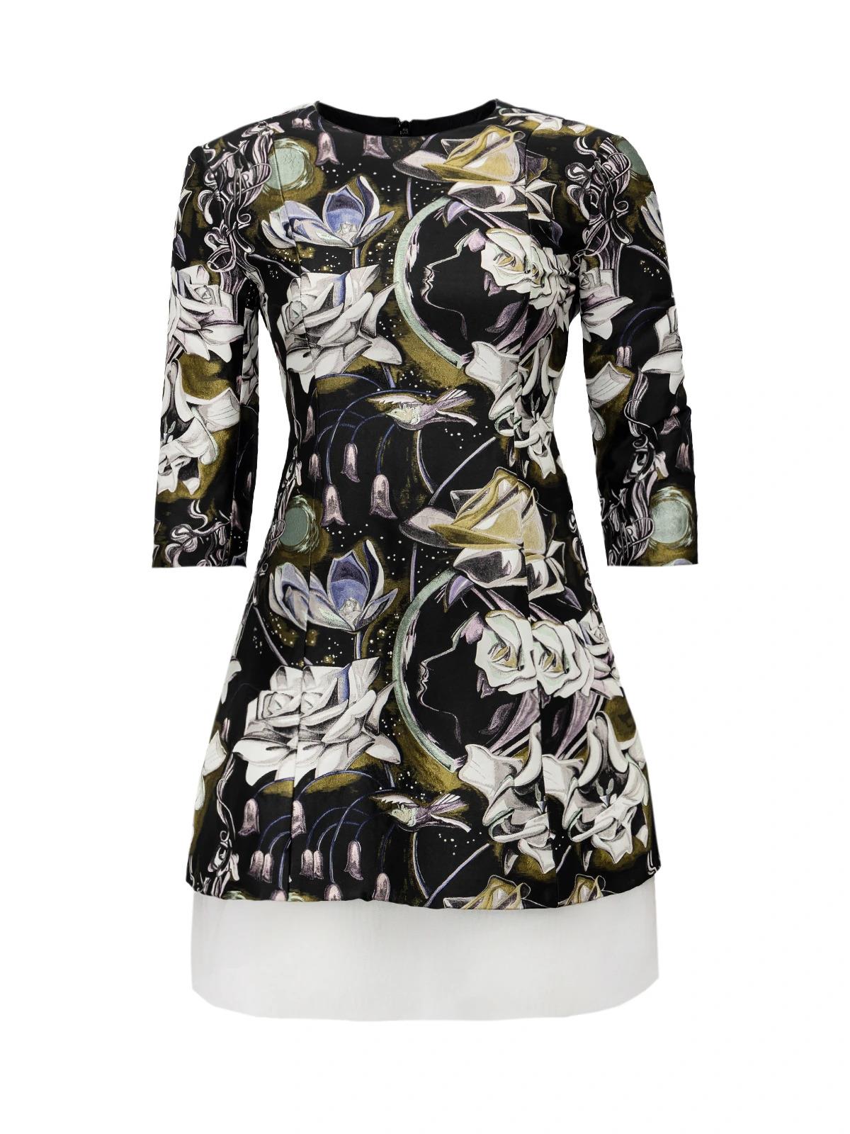 Платье DIOR 36FR черное шелк цветы белые фиолетовые