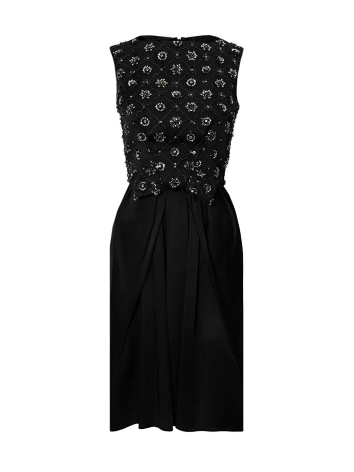 Платье DIOR 36FR черное шелк атласное без рукавов узоры цветы бисер блестки