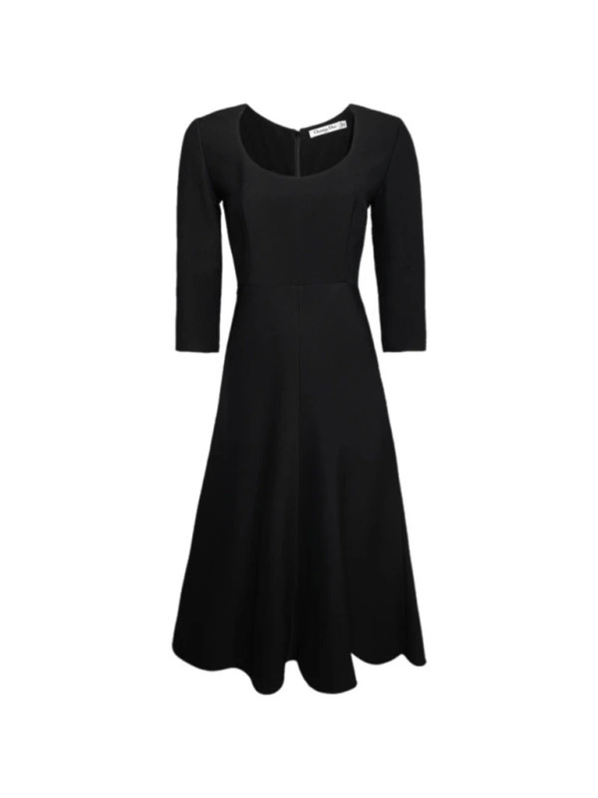 Платье DIOR FR 40 черное макси укороч рукав шерсть
