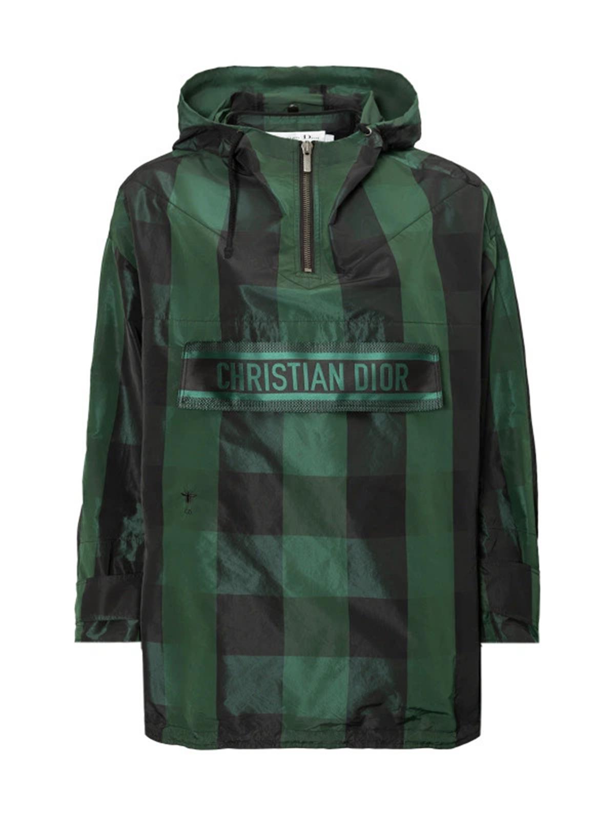 Куртка DIOR INT XS анорак зеленая черная клетка спереди молния карман с лого капюшон полиэстер