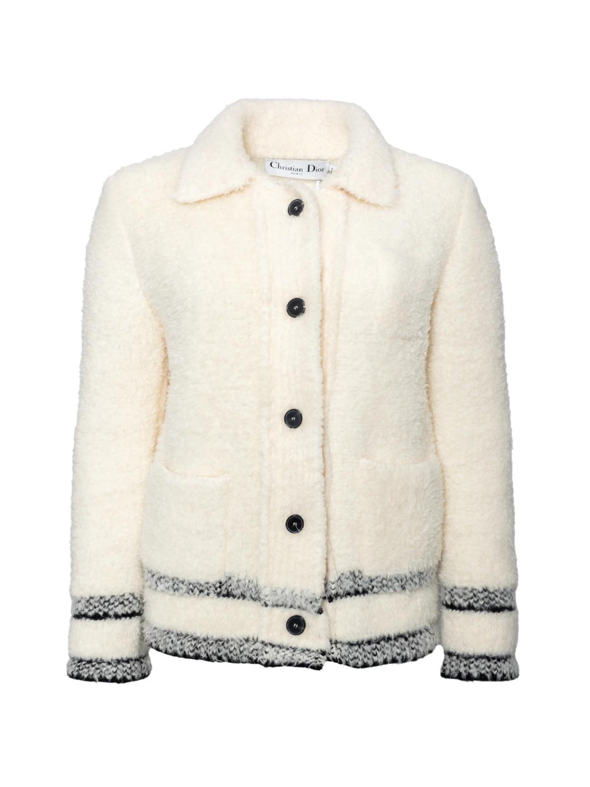 Пиджак DIOR INT M белый букле черная отделка лого шерсть