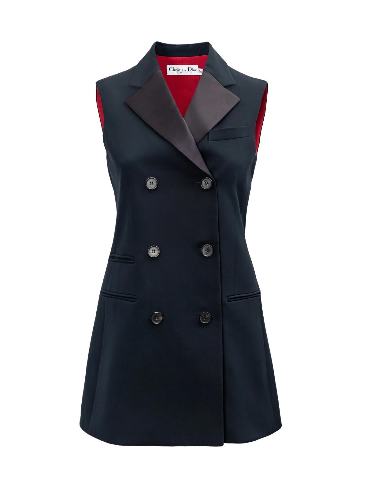 Жакет DIOR FR 38 синий темный без рукавов красный подклад шелк шерсть