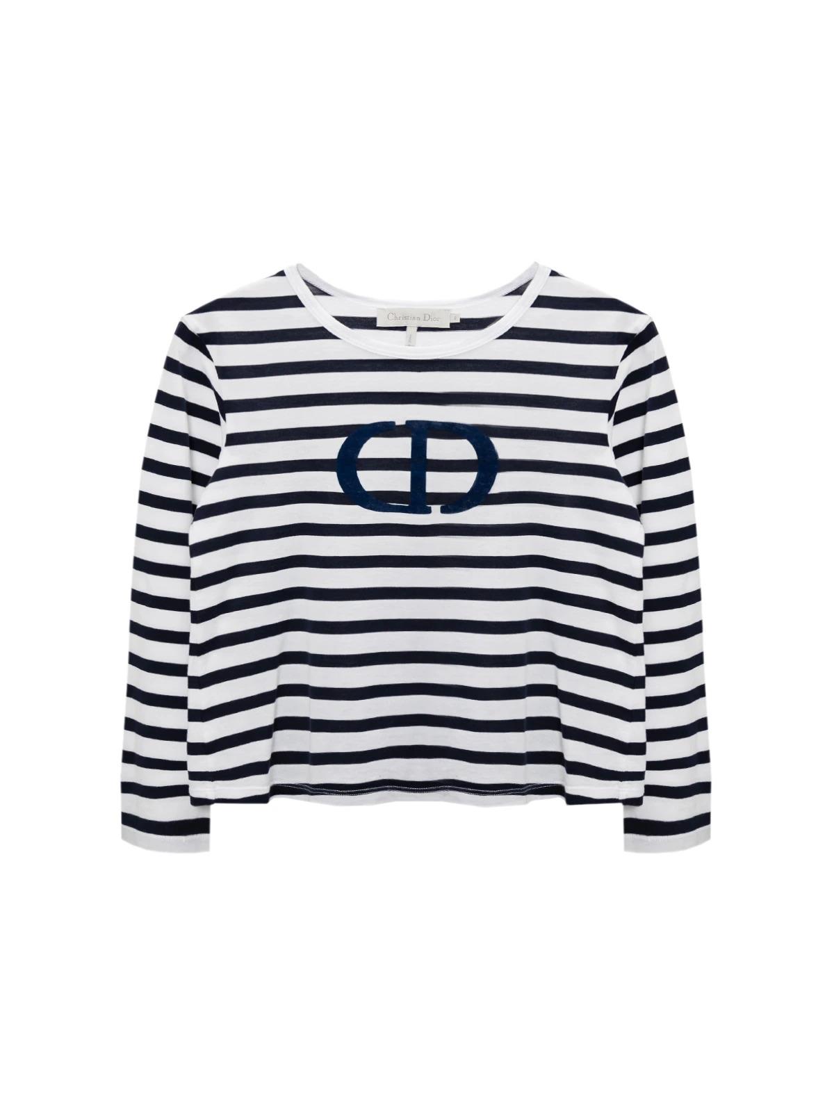 Джемпер DIOR 128см белый синяя полоска с лого хлопок детское