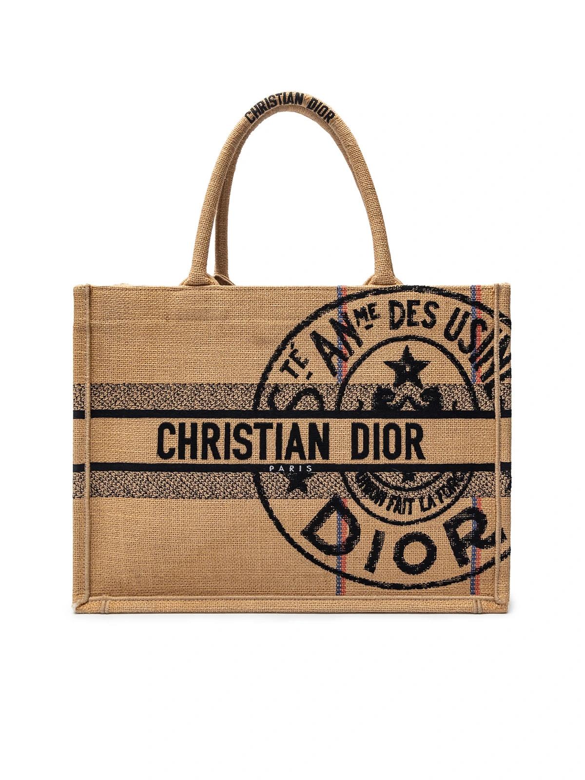 Сумка DIOR INT М бежевая шопер две ручки черное лого ткань